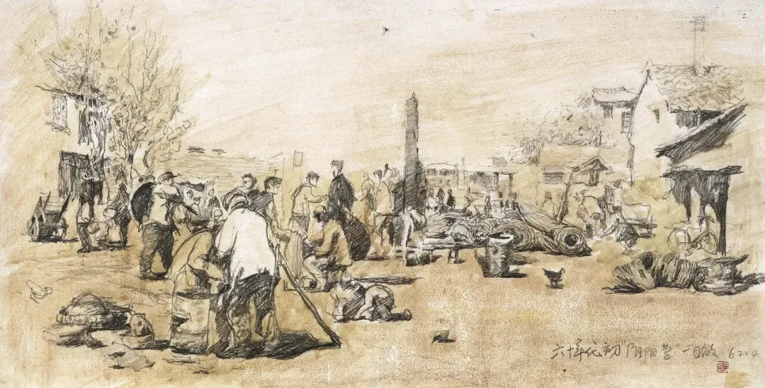 河南兰考村景 41cm×37cm 铅笔淡彩 1966年