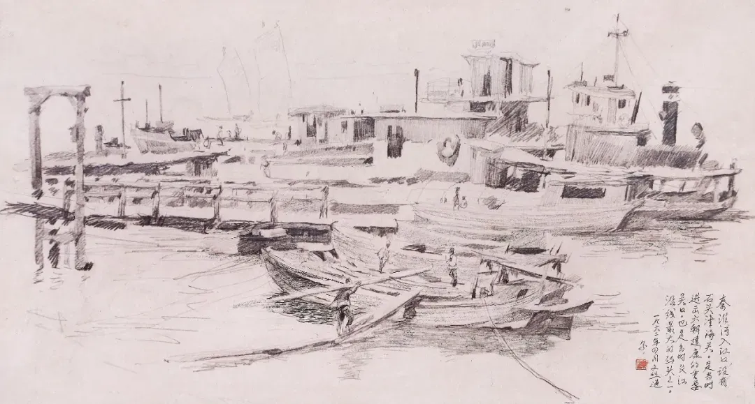 阴阳营和秦淮河码头 54cm×50.5cm 铅笔淡彩 1962年