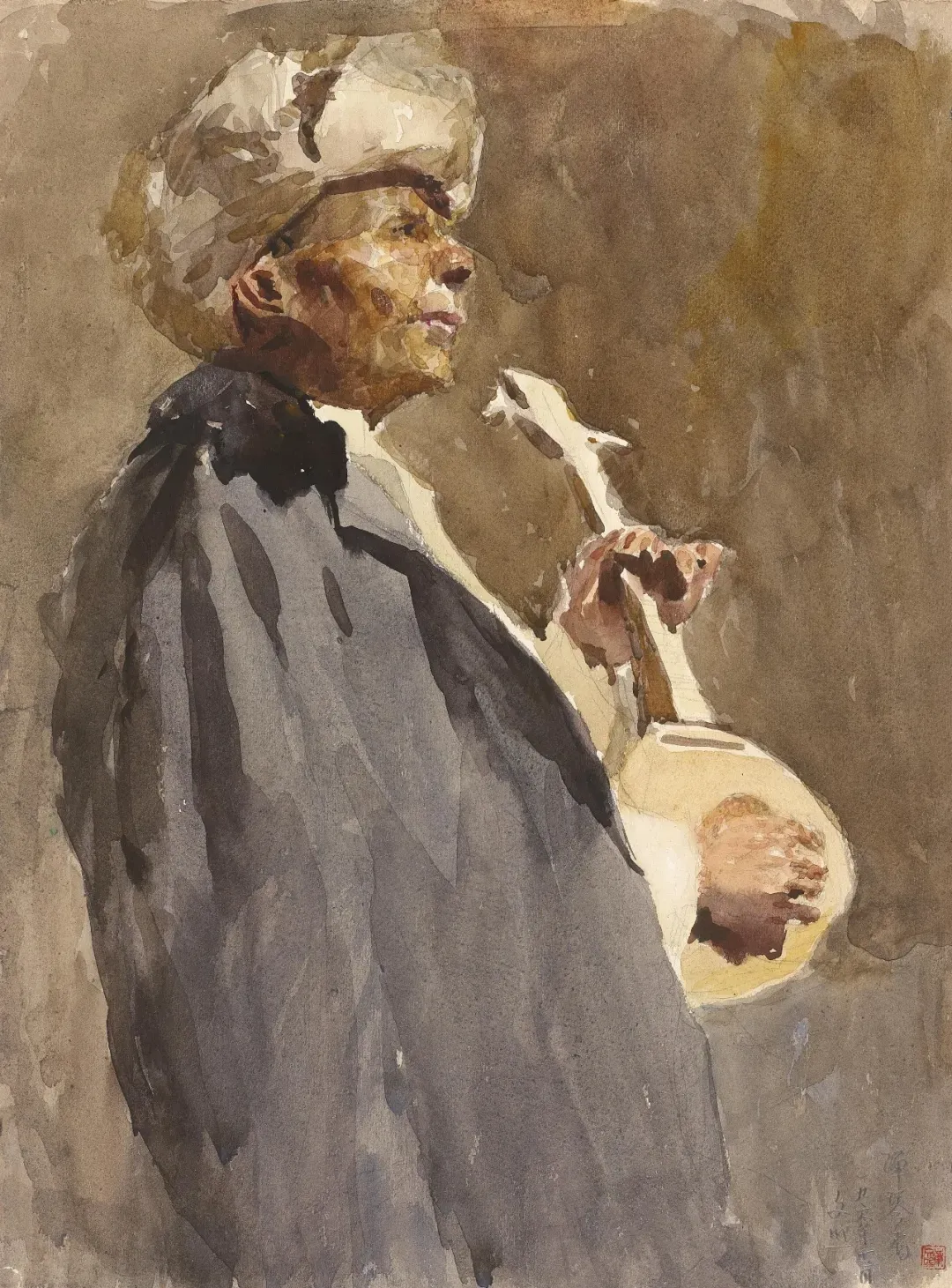弹琴者 38cm×28cm 铅笔淡彩 1963年