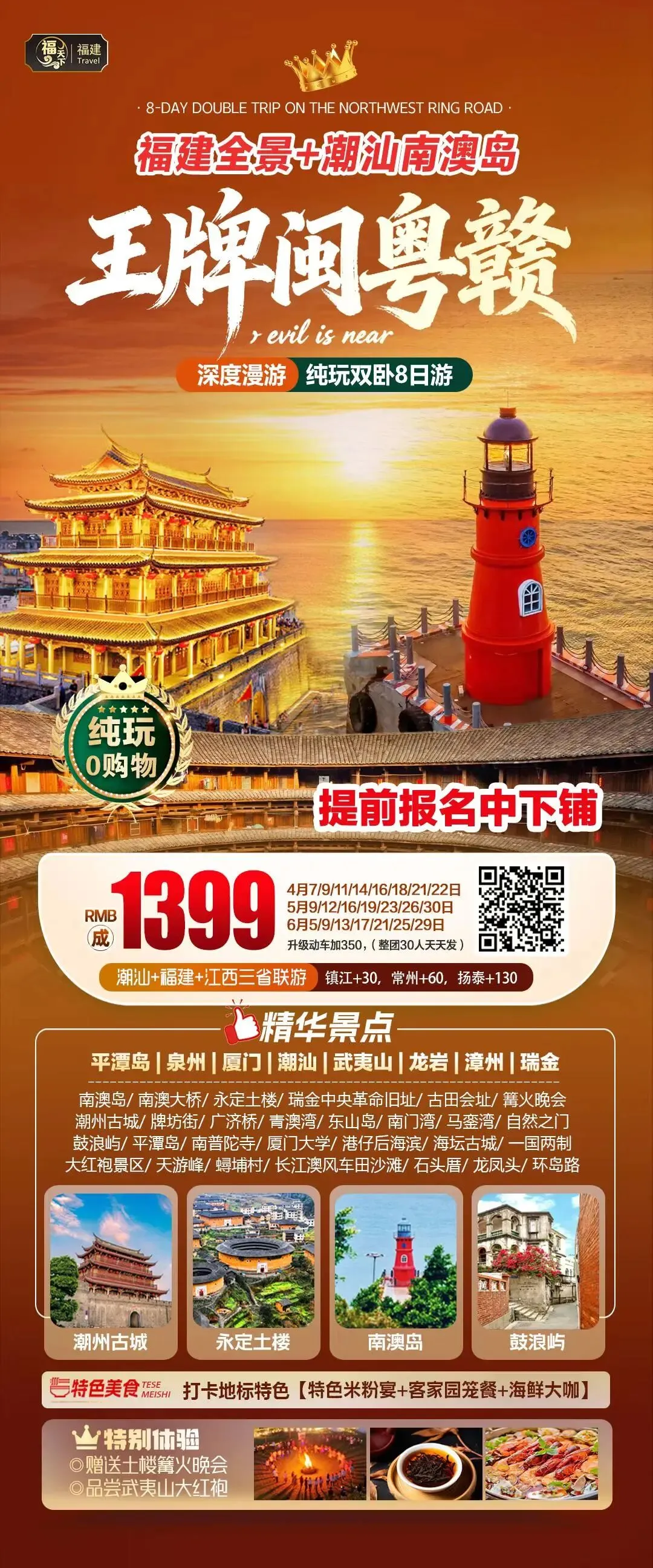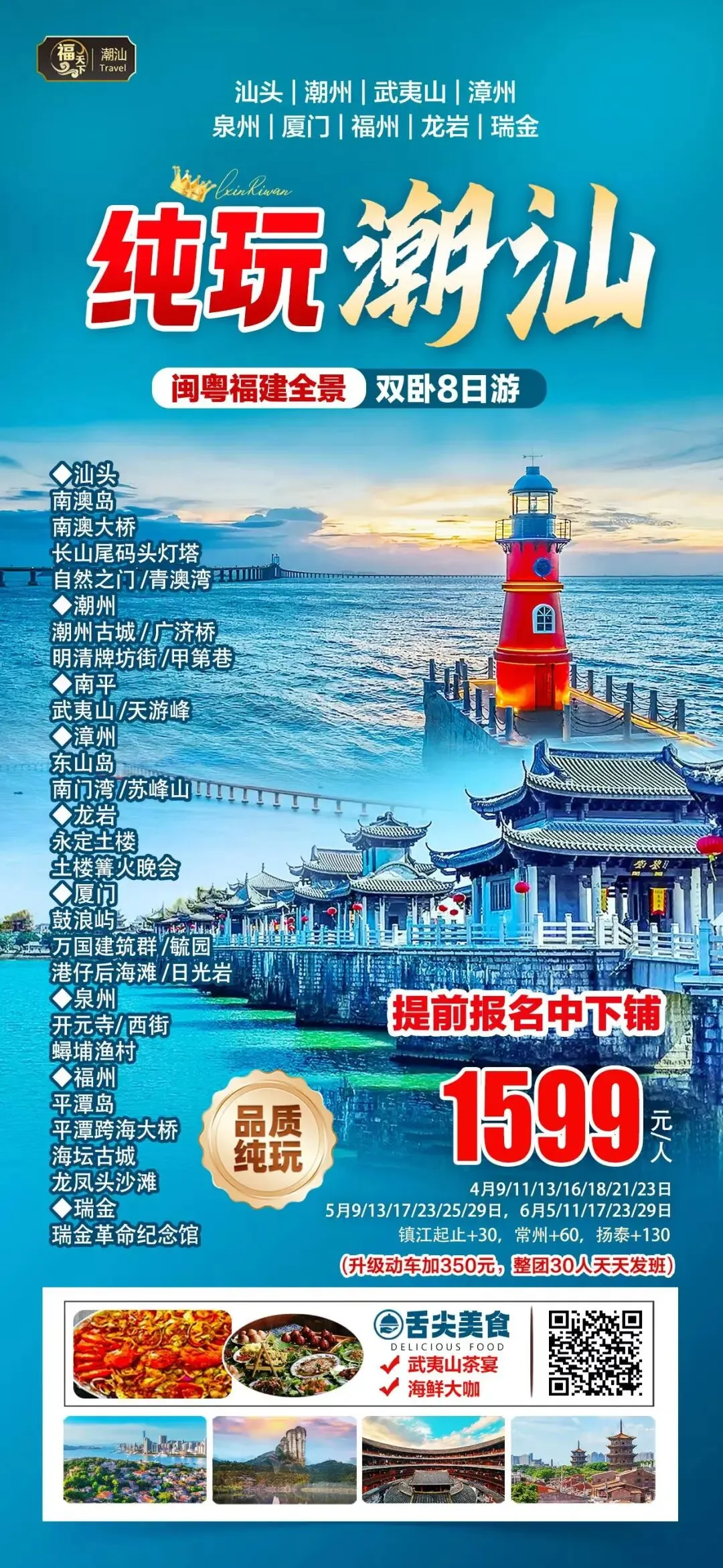 ✔潮汕➕南澳岛➕泉州➕平潭岛➕武夷山➕龙岩➕瑞金➕漳州深度大环游