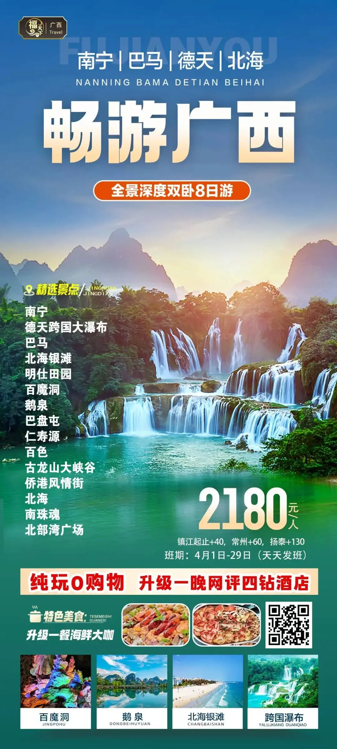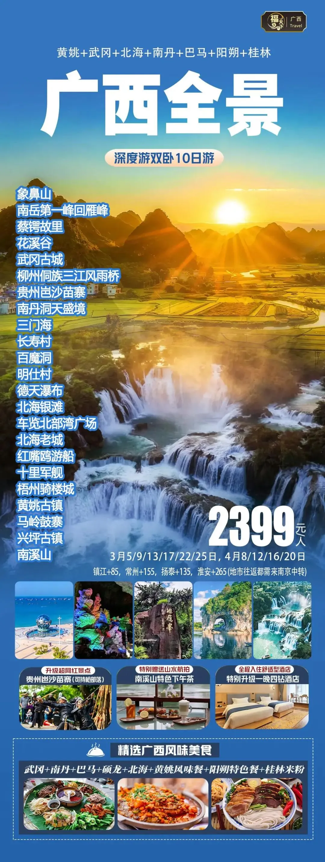 ✔ 畅游;桂林/南宁/巴马/德天/北海/柳州/钦州