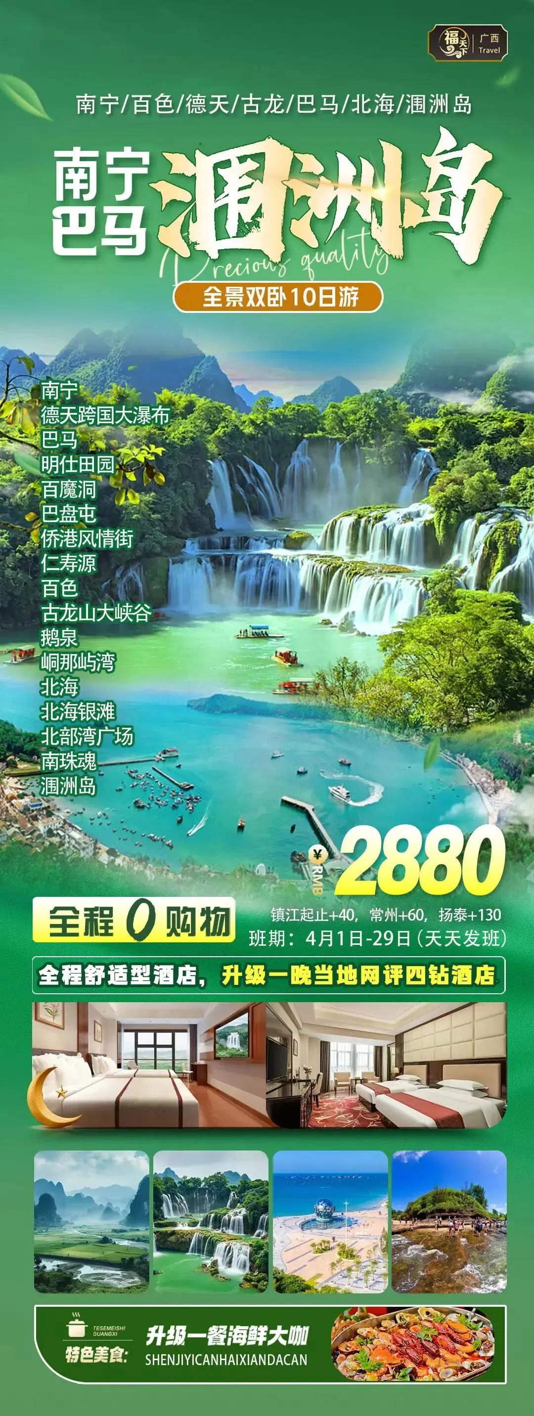 ✔ 畅游;南宁/巴马/德天/北海/百色/钦州/涠洲岛