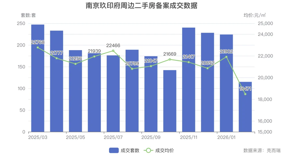 周边二手房成交均价在 18000-23000 元/㎡区间,玖印府新房价格略高于周边二手房,但考虑到产品力和空间利用率优势,性价比仍然可观。