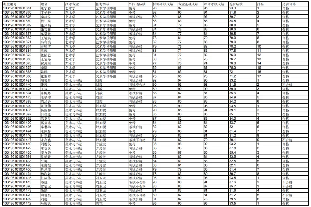 南京师范大学美术学院2026年博士研究生普通招考考核工作已经结束,根据学校相关规定,现将参加考核的考生综合成绩予以公示,详见见下。