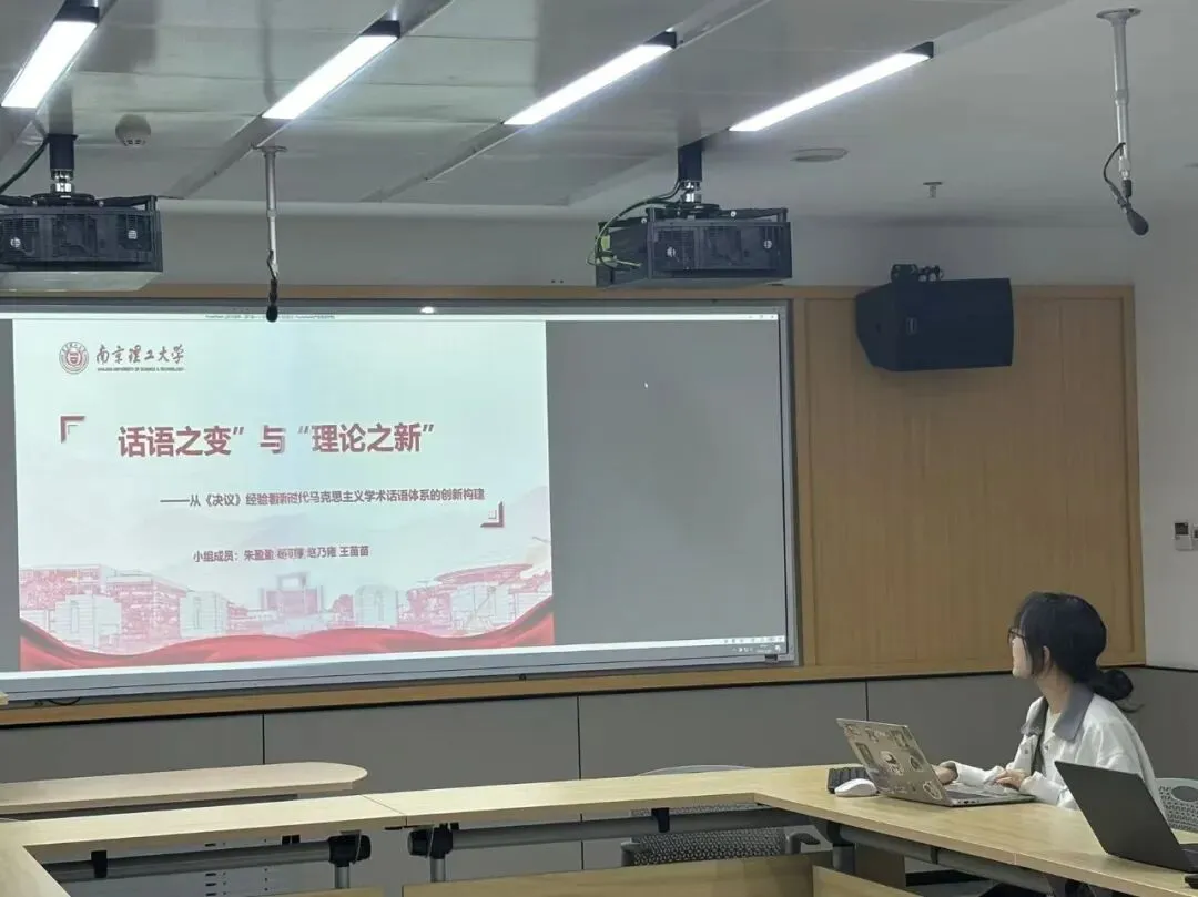 各小组成员从不同角度对本次研读内容展开分享。第一组以“话语之变”与“理论之新”为题,系统阐释了“坚持开拓创新”这一百年奋斗历史经验的重大意义与现实价值。王苗苗立足《决议》内容,指出“开拓创新”在话语维度上至少包含三重意涵:其一,对既有话语范式的批判性反思与超越;其二,扎根中国实践,提炼具有解释力与标识性的概念;其三,构建具有主体性、原创性的学术话语体系。这三重意涵构成了理解新时代马克思主义学术话语体系创新的基本框架。同时,她还梳理了话语演进过程中的历史逻辑与现实逻辑,并强调在构建话语体系创新过程中,要构建具有主体性、原创性的知识体系,在“两个结合”中开辟话语创新的新境界。