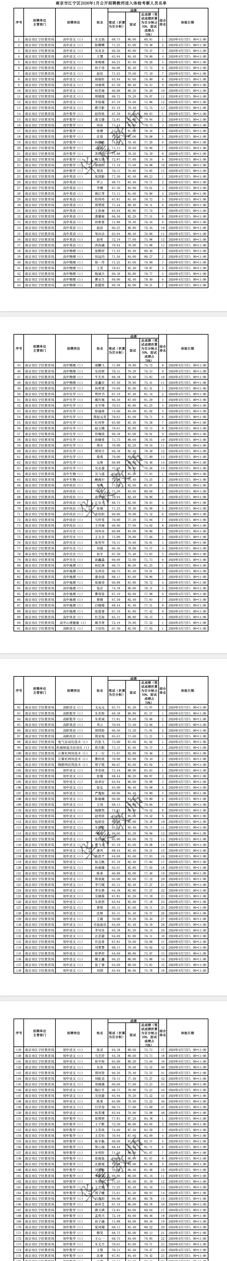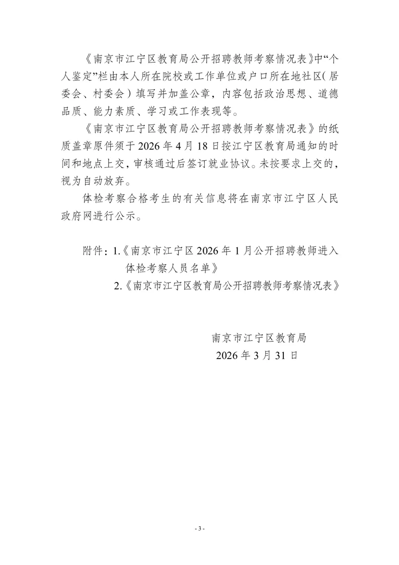 - 附件:1.南京市江宁区2026年1月公开招聘教师进入体检考察人员名单.pdf