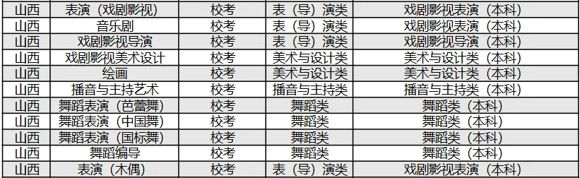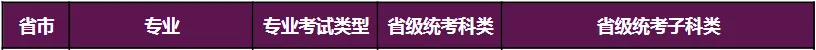 说明:1.若同一省份同一专业(含招考方向)对应多个省统考子科类,考生须至少参加其中一个子科类的省统考。