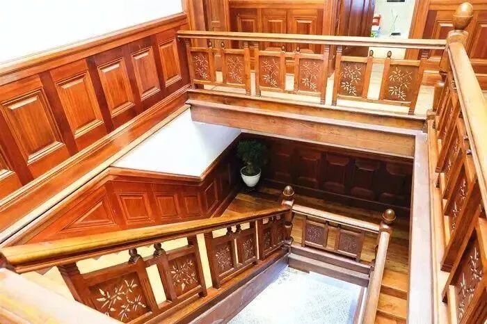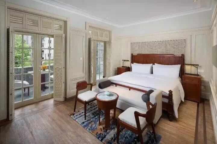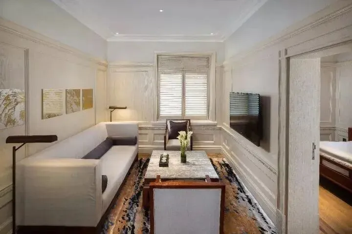 酒店仅有7间民国风的客房。木质楼梯盘旋而上, 打开房门,房间挑梁很高,格局未变却很新,装修复古,很民国的感觉:木质地板、整套实木家具、古朴的法式百叶窗、丝涟家用床垫、丝麻民国风睡袍、胶囊咖啡机、骨瓷茶具…低调中透露着奢华感。