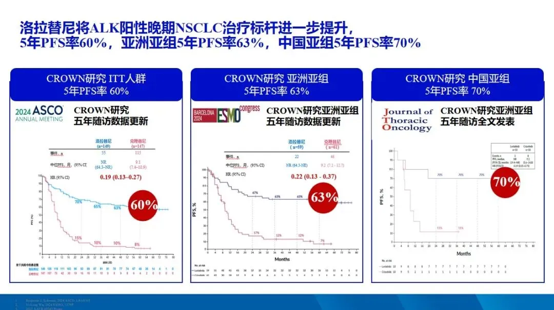 陈佳艳教授表示,全球首部肺癌DNA+RNA(D+R)同步共检专家共识已正式见刊,这标志着“同步共检”理念已获得临床的广泛认同。尽管肺癌融合基因属于罕见靶点,但基于我国庞大的人口基数,临床对这一罕见靶点的检测仍应予以高度重视。而且,随着近年来靶向药物的迭代升级,为ALK阳性NSCLC患者带来了更长的无进展生存期(PFS)。其中,三代ALK-TKI洛拉替尼5年PFS率达到60%(HR=0.19),已率先引领ALK阳性NSCLC走向“临床治愈”。鉴于此,融合基因检测势在必行。