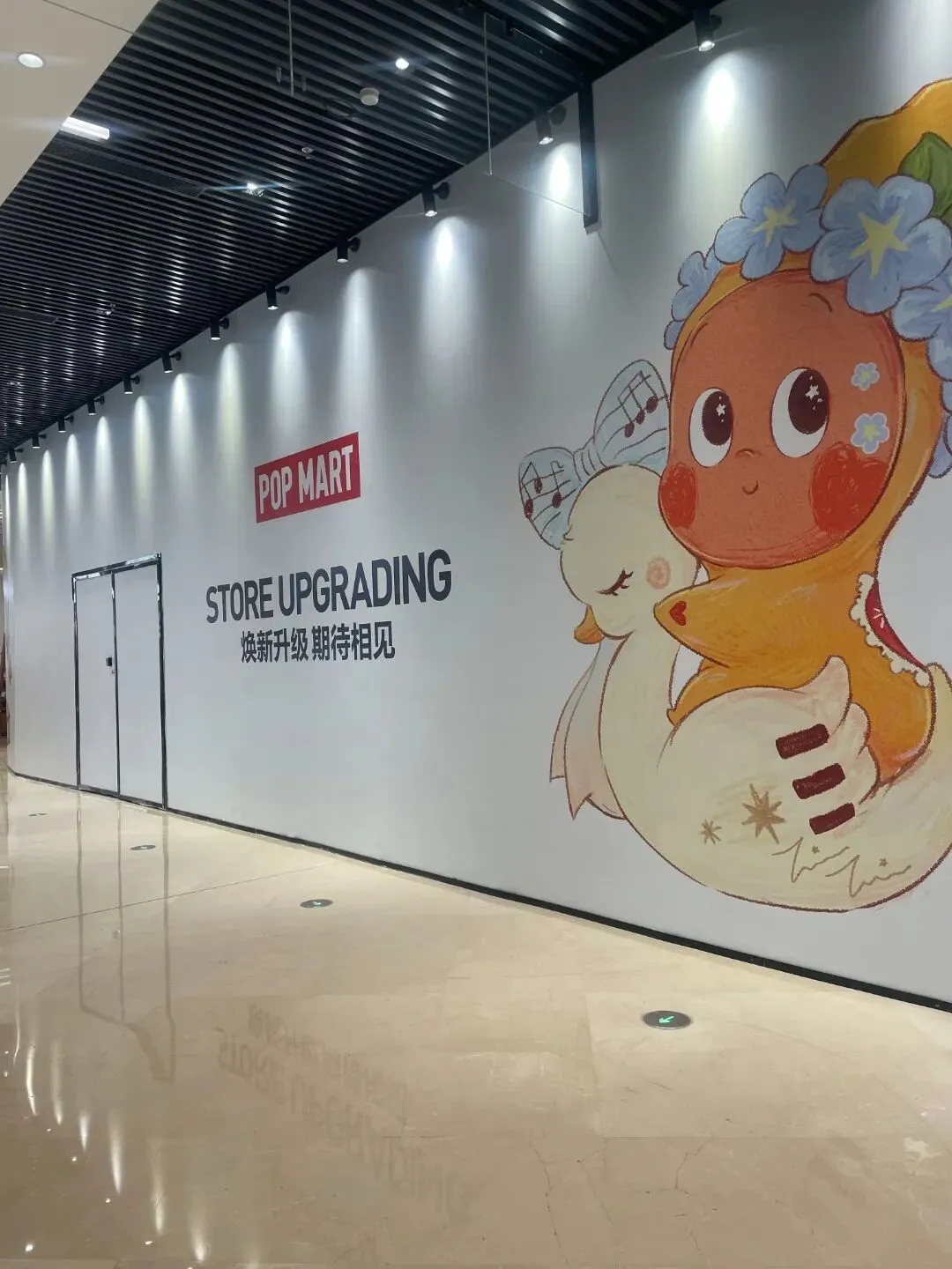 位于一楼的泡泡玛特在焕新升级中,这也是该品牌近期的常态动作,不少门店都在围挡升级。
