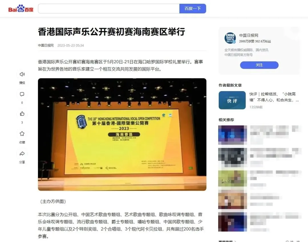各平台曝光量數以萬計,閱讀人次、數量累計達千萬,百度百科、今日頭條、網易新聞、新浪新聞、騰訊新聞、澎湃新聞、搜狐新聞、搜狐娛樂、環球網等權威媒體支持;各賽區城市地方門戶網站報道,電視台新聞播出等。