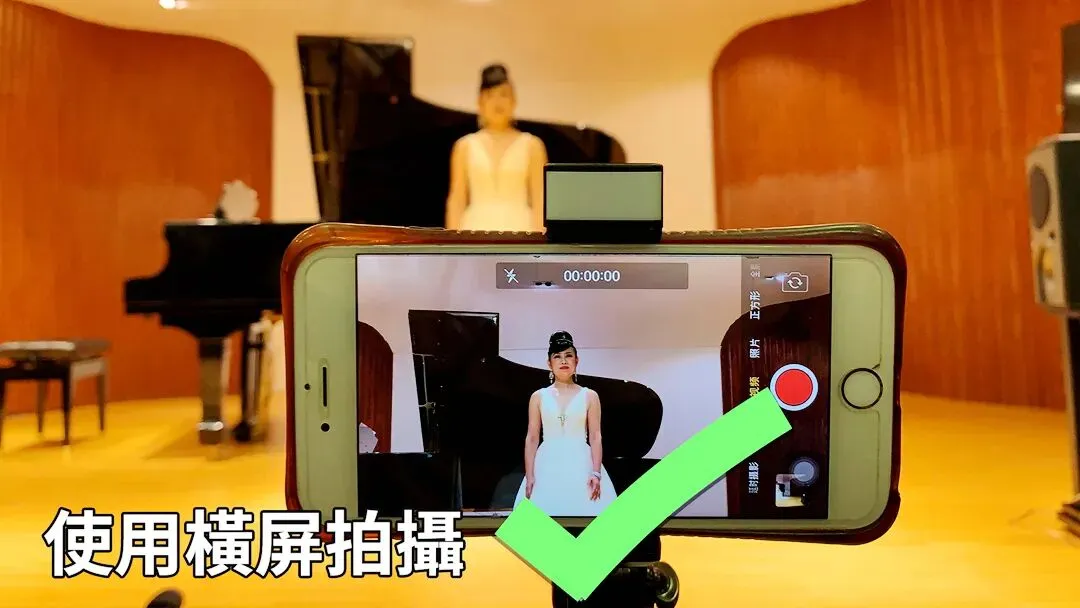 錄制時必須使用橫屏拍攝並固定機位,設備高度需與樂器在同一水平面上。