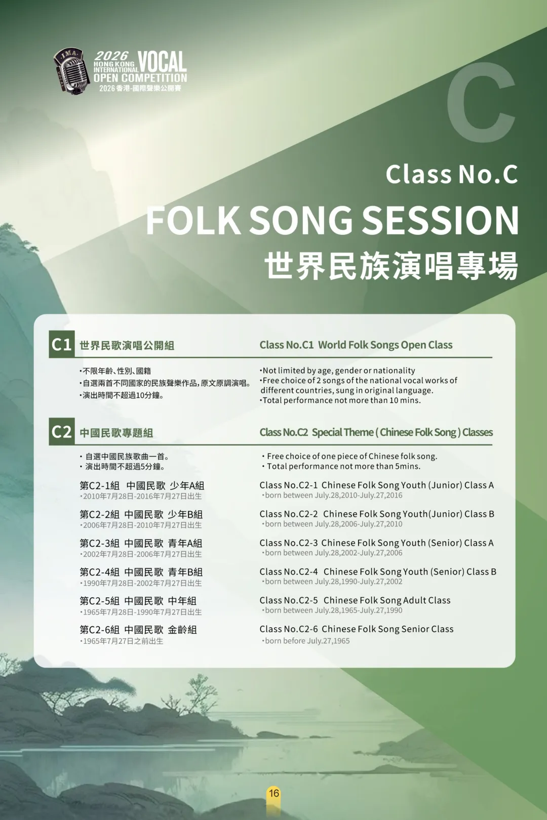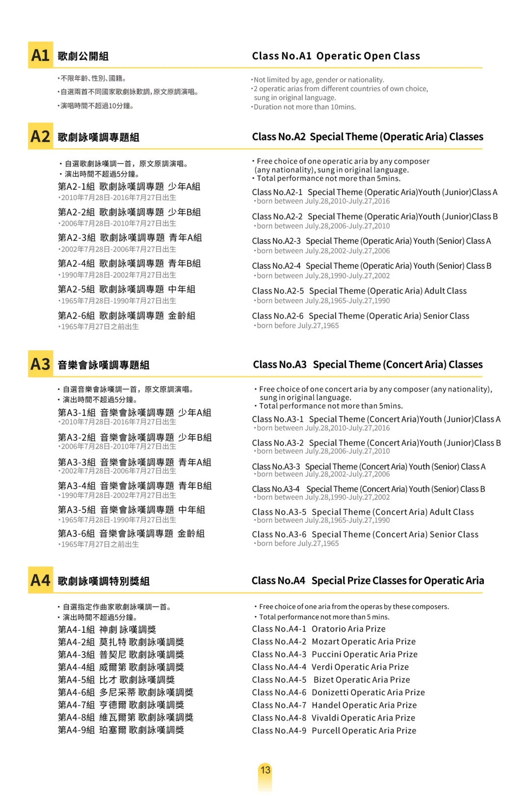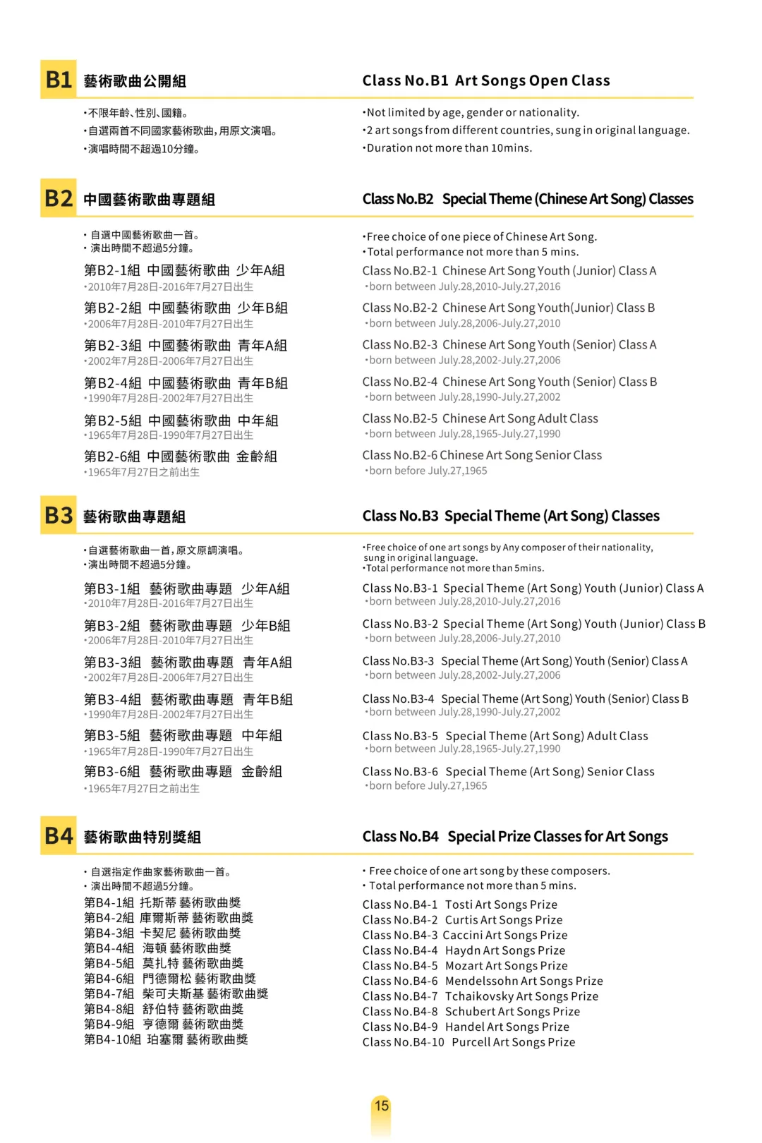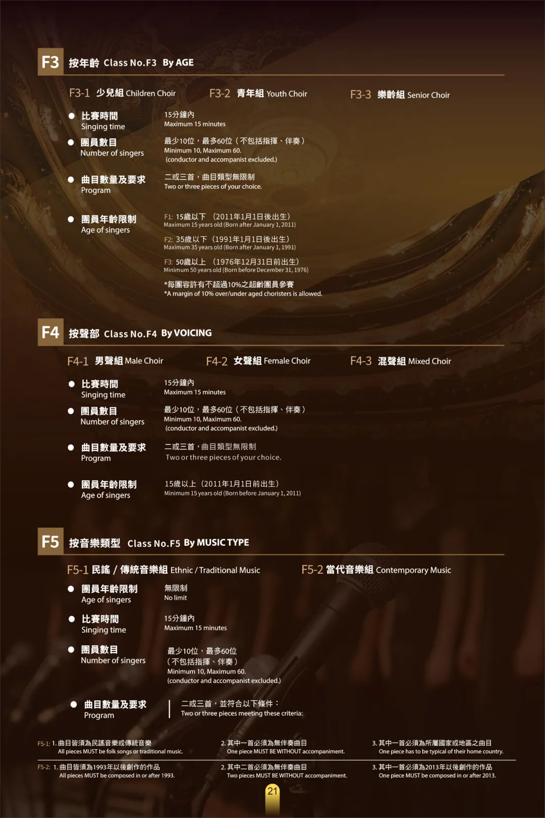伴奏要求 :美聲、民族唱法使用鋼琴現場伴奏,或钢琴伴奏的錄音为伴奏均可;