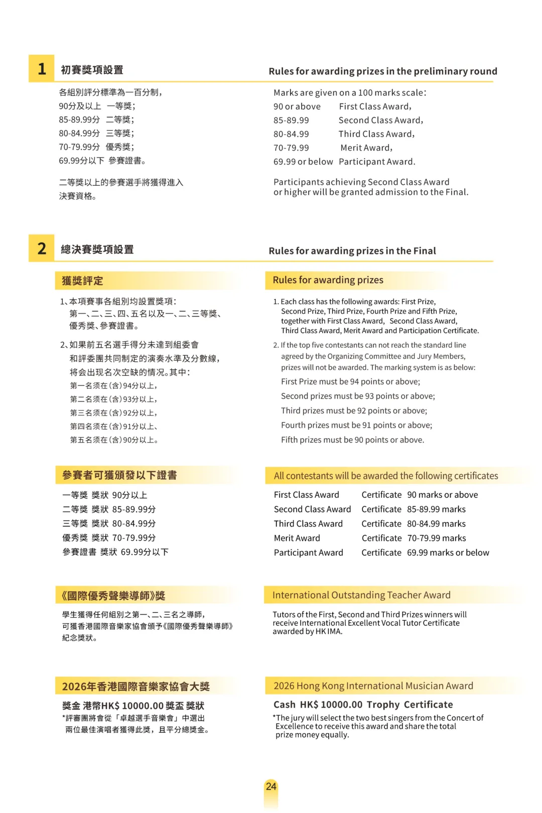 3. 初賽一等獎選手的導師可獲 “優秀聲樂導師” 證書,提升教學資質認可度。