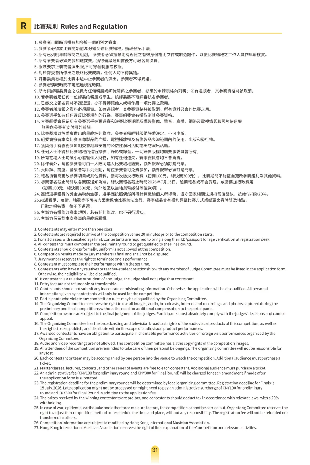 ♫參賽者信息及比賽組別、曲目時長嚴格按照比賽章程執行,如存在不符合情況,組委會有權要求選手重新提交。