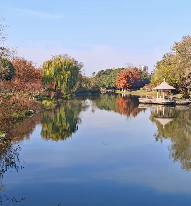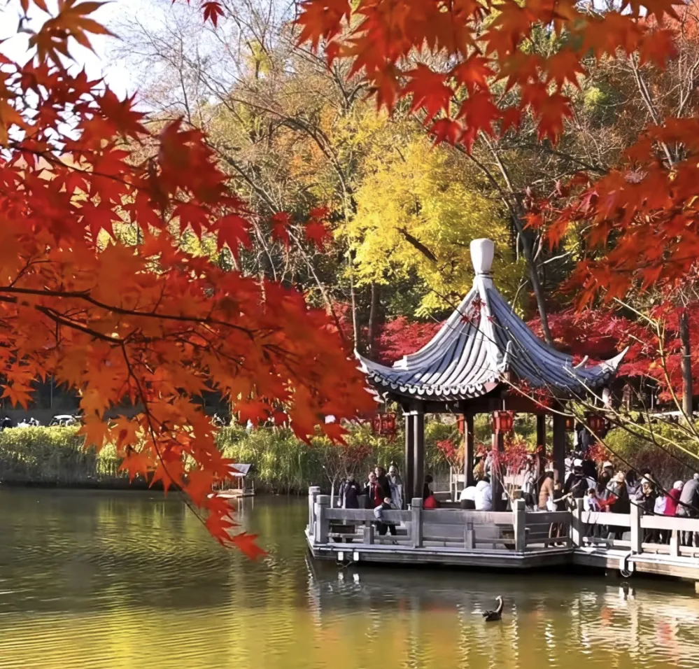 南京秋天的水是晶莹剔透的、绚丽多彩的。