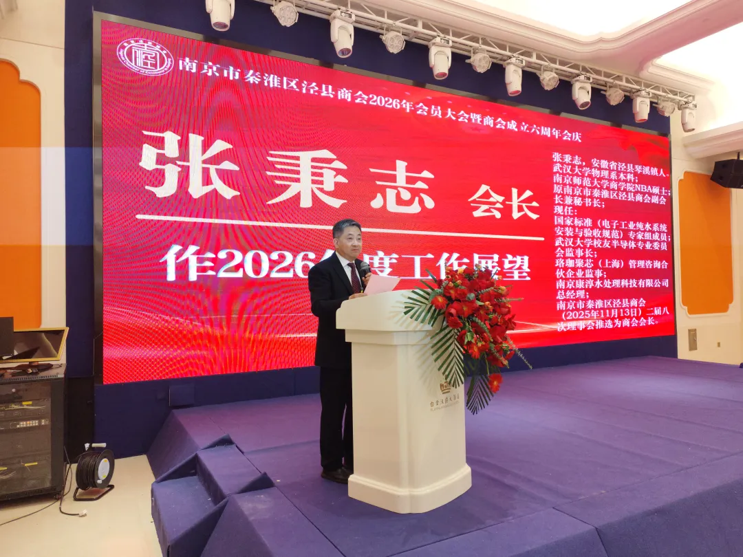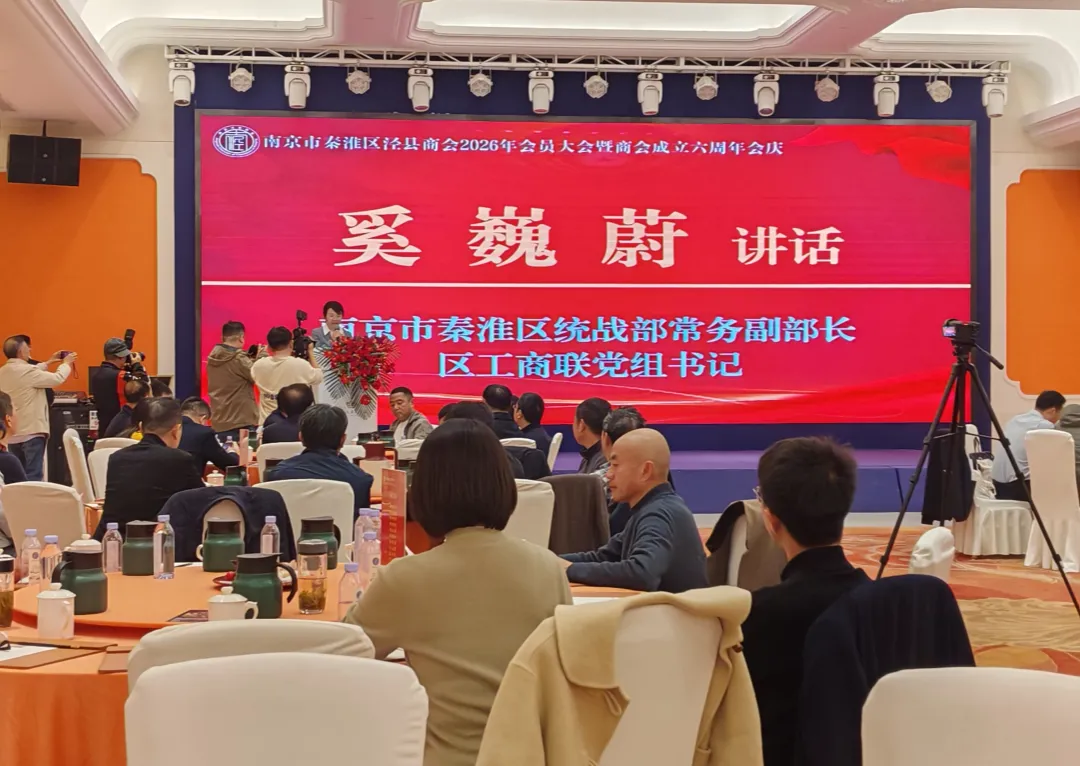 会上,泾县商会副会长杨省悟致了欢迎词,原会长徐志龙作了泾县商会2025年度工作报告,新任会长张秉志作了商会2026年工作展望;秦淮区委统战部常务副部长、区工商联党组书记奚巍蔚为张秉志会长授牌。