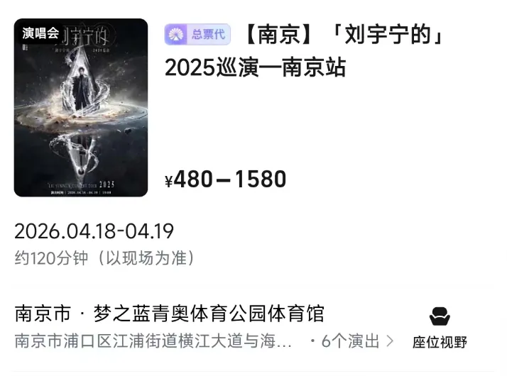 刘宇宁南京演唱会大量好位置!手慢无!刘宇宁演唱会2026收官战站!