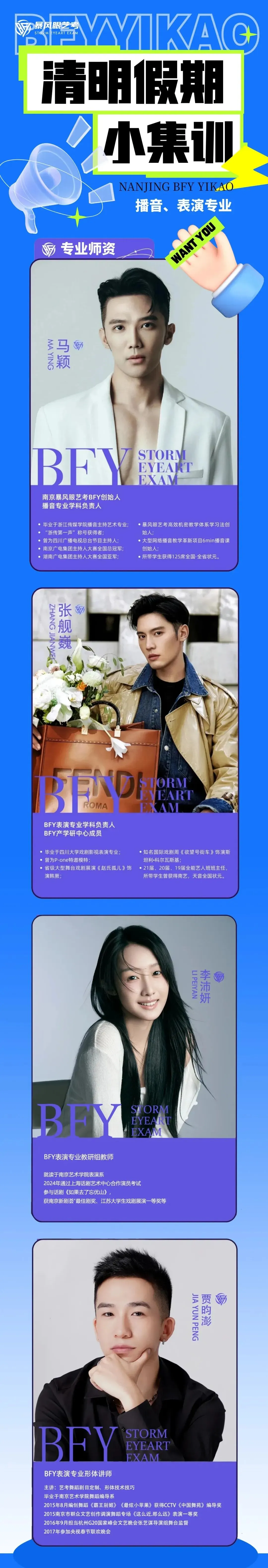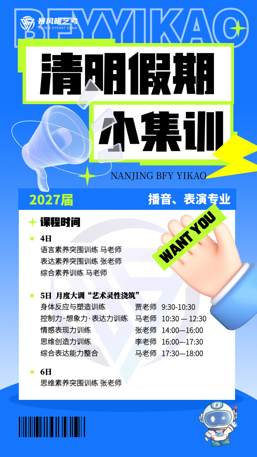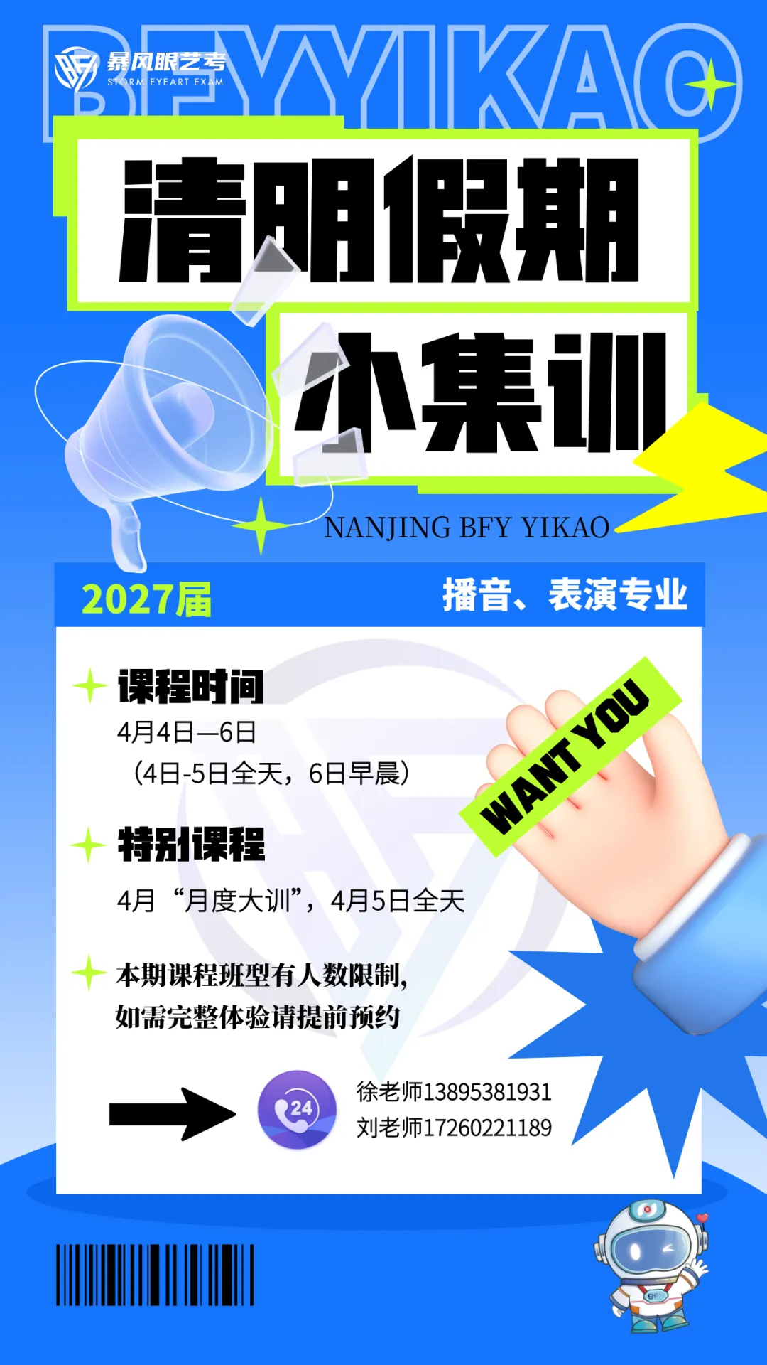 >南京暴风眼艺考丨27届播音、表演专业清明集训计划招募啦!小暴风们速速集合!