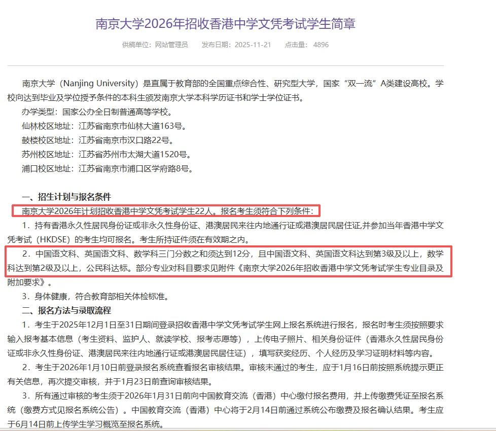 DSE报考南京大学及更多详情