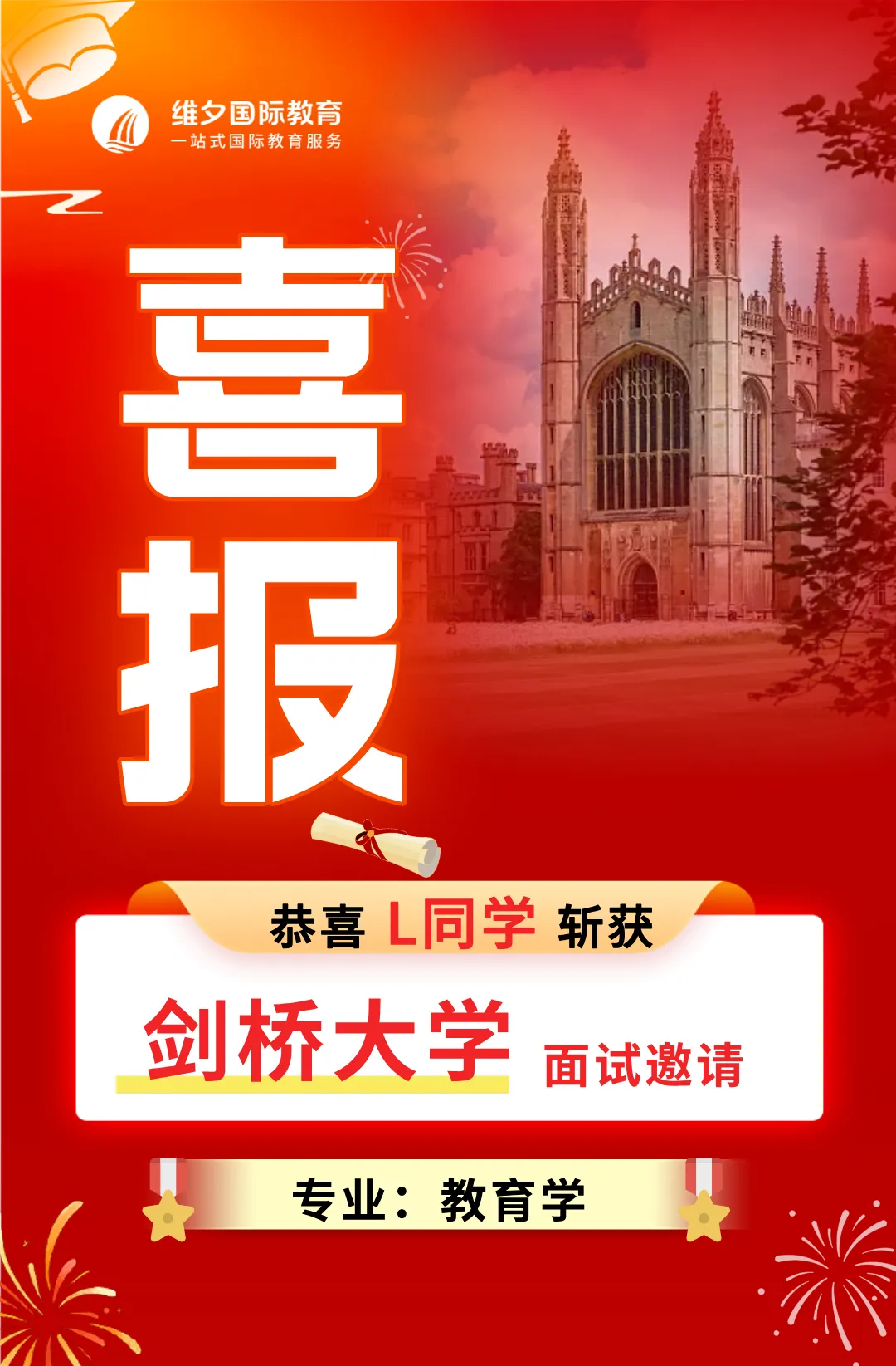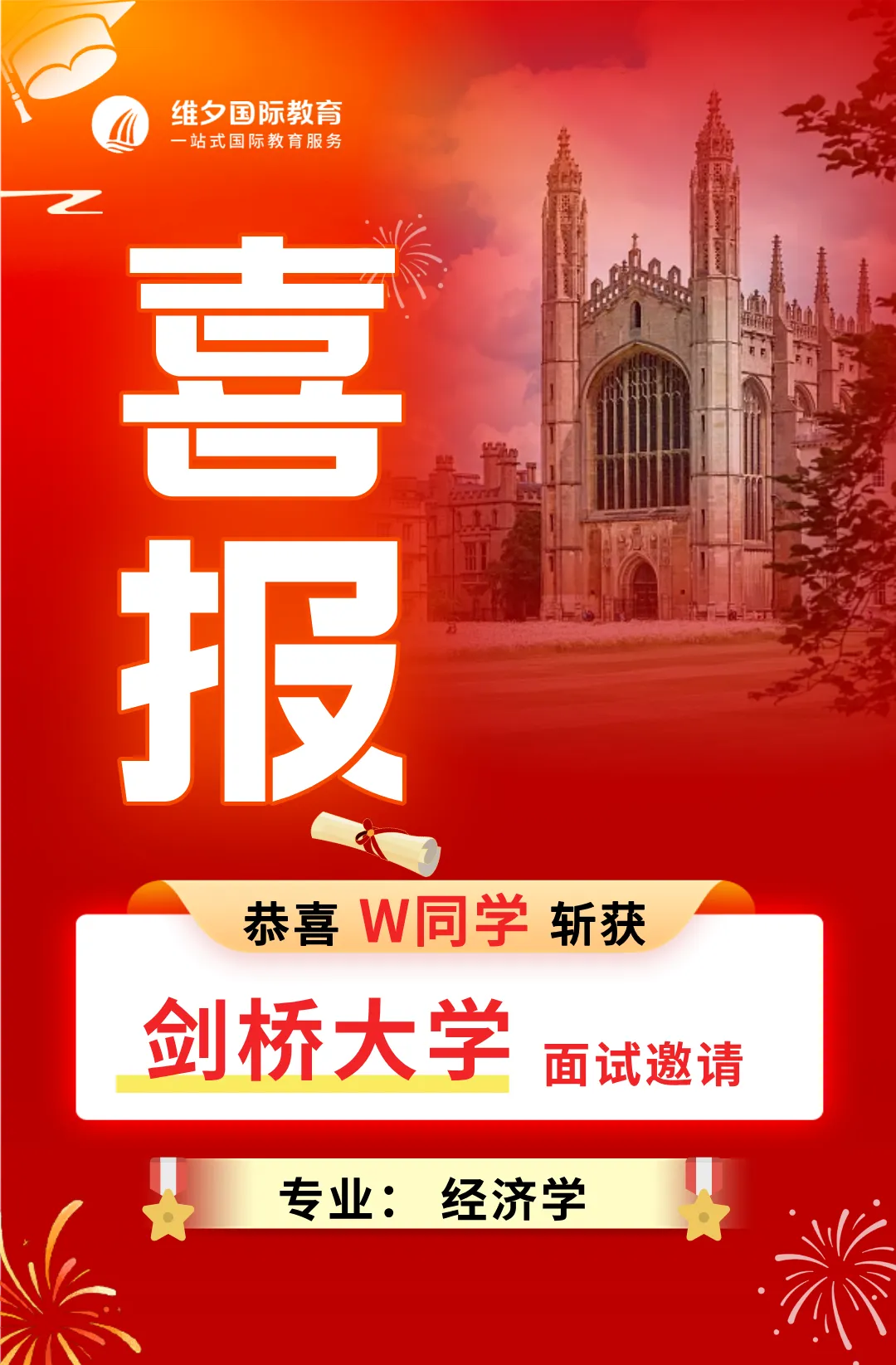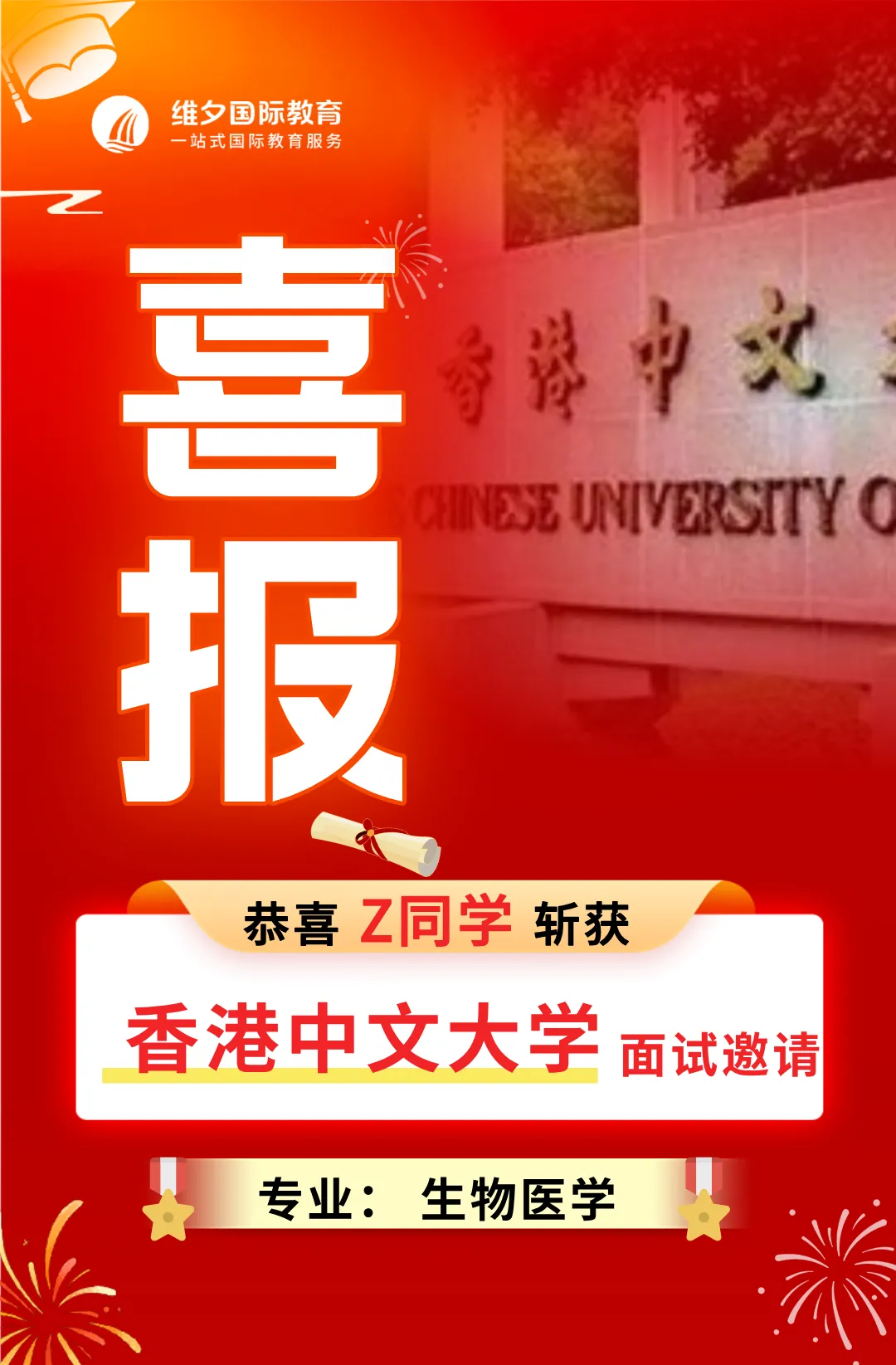 在维夕系统的培养下,咱们已经有学员获得通过校长推荐计划获得了剑桥、香港大学、港中文等世界名校的面邀。以下为部分学员喜报展示,每一份offer都是我们共同努力的见证: