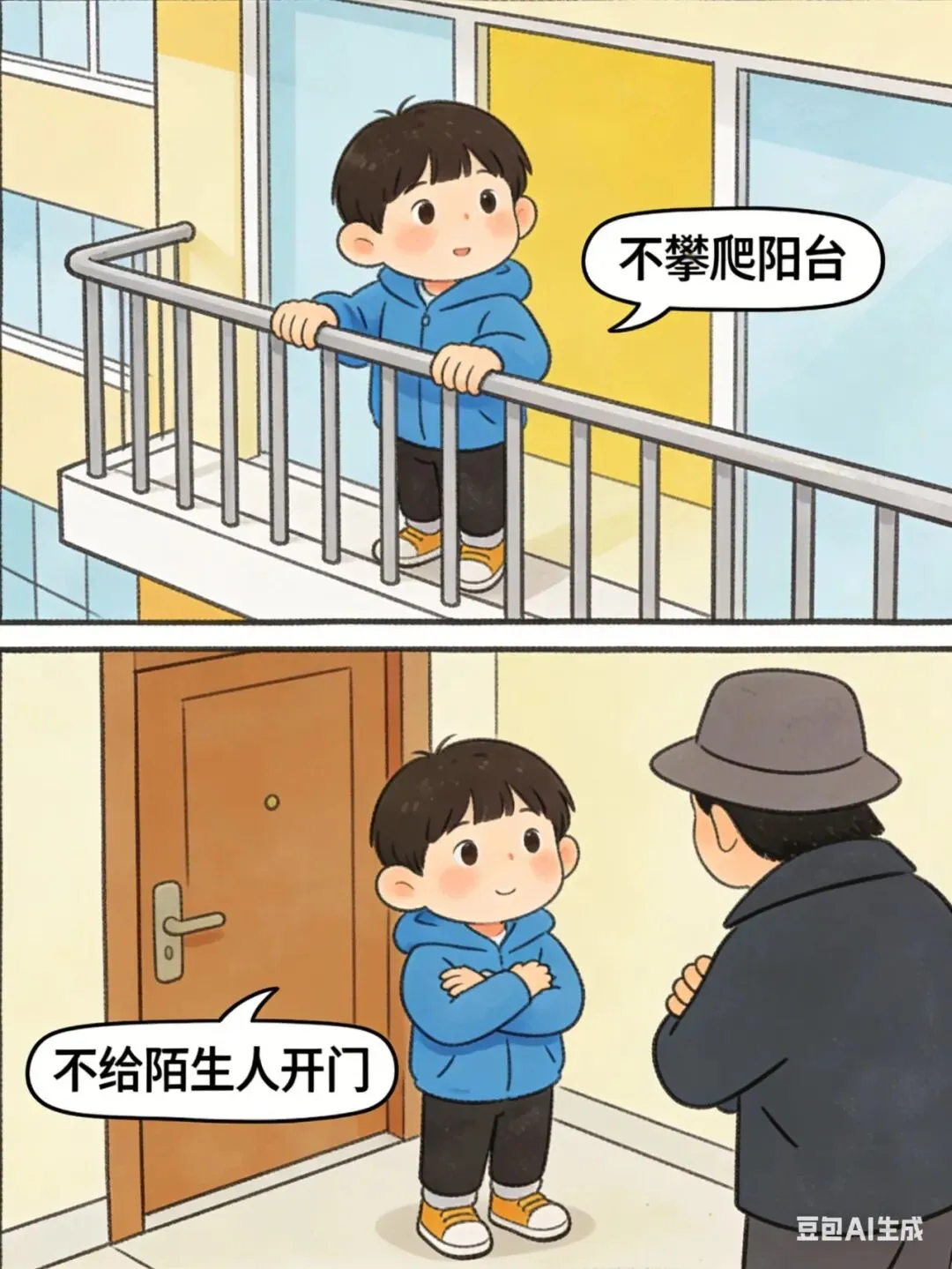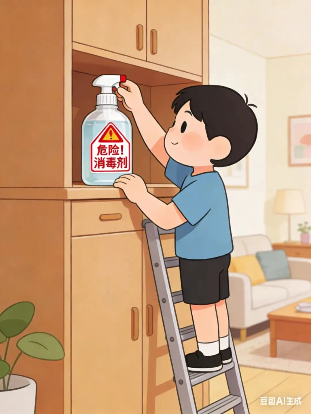 孩子独自在家,教育其不给陌生人开门。妥善保管消毒剂、药品等危险品,放在孩子接触不到的地方并贴好警示标签。
