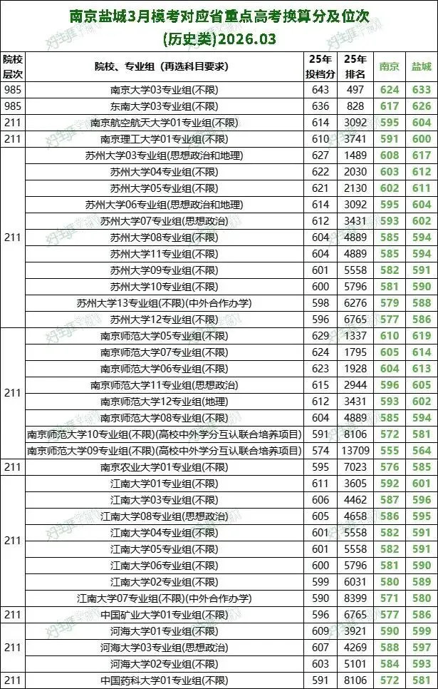 数据说明:分数线是根据南京盐城模考划线利用线差法计算而来,仅供参考。