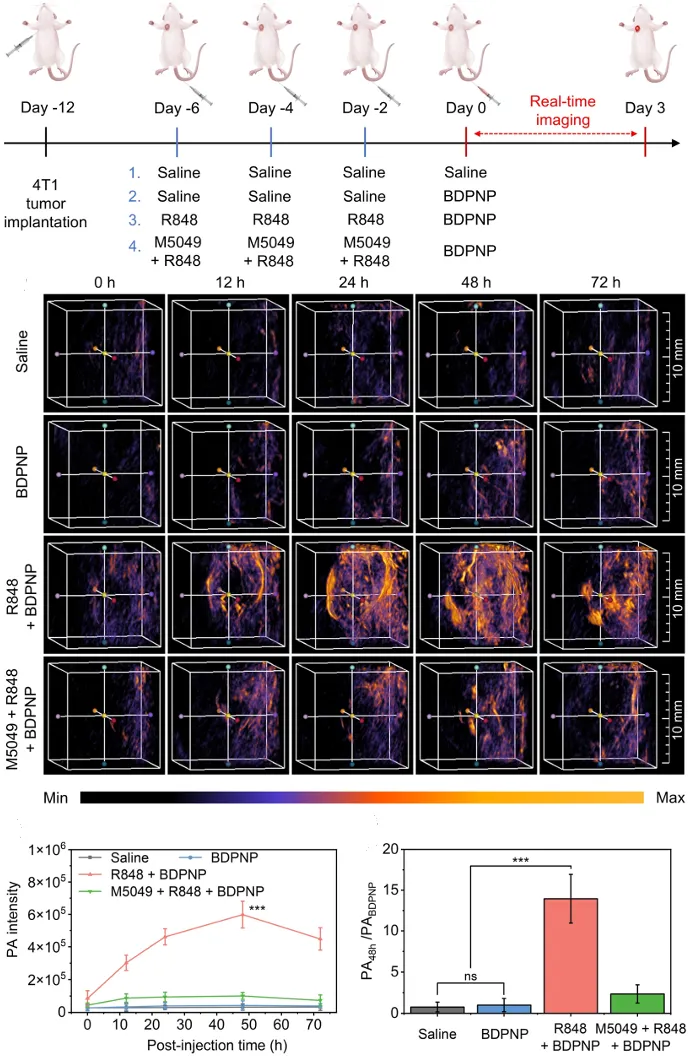 图3. BDPNP 探针在 4T1 小鼠模型内光声成像