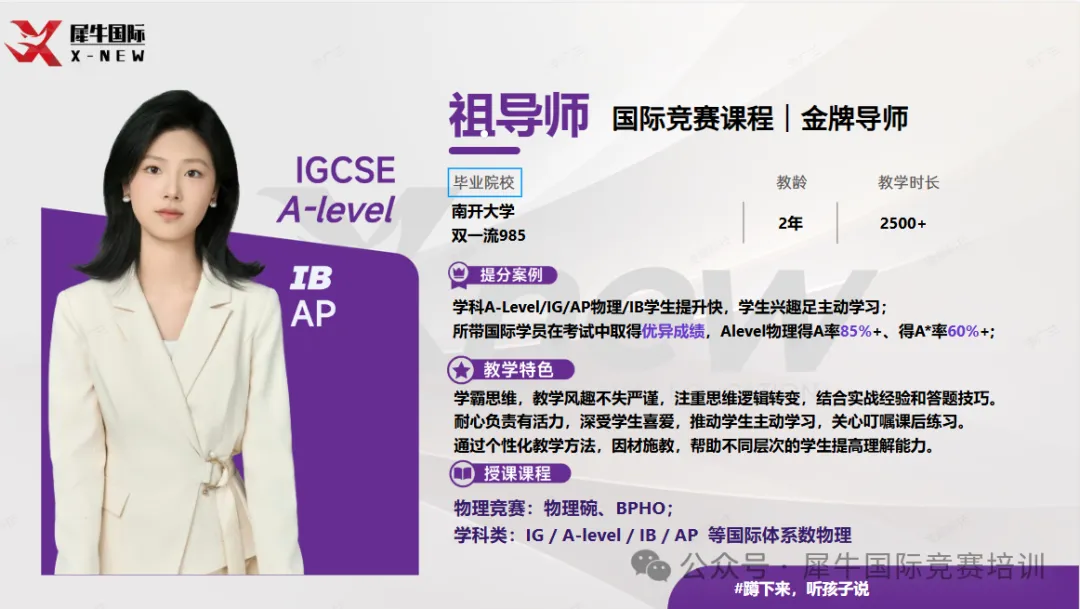 我们的老师大都来自世界级名校毕业,比如伦敦大学学院,南开大学,复旦大学等,不仅有竞赛获奖经验,更有丰富的教学辅导经验。