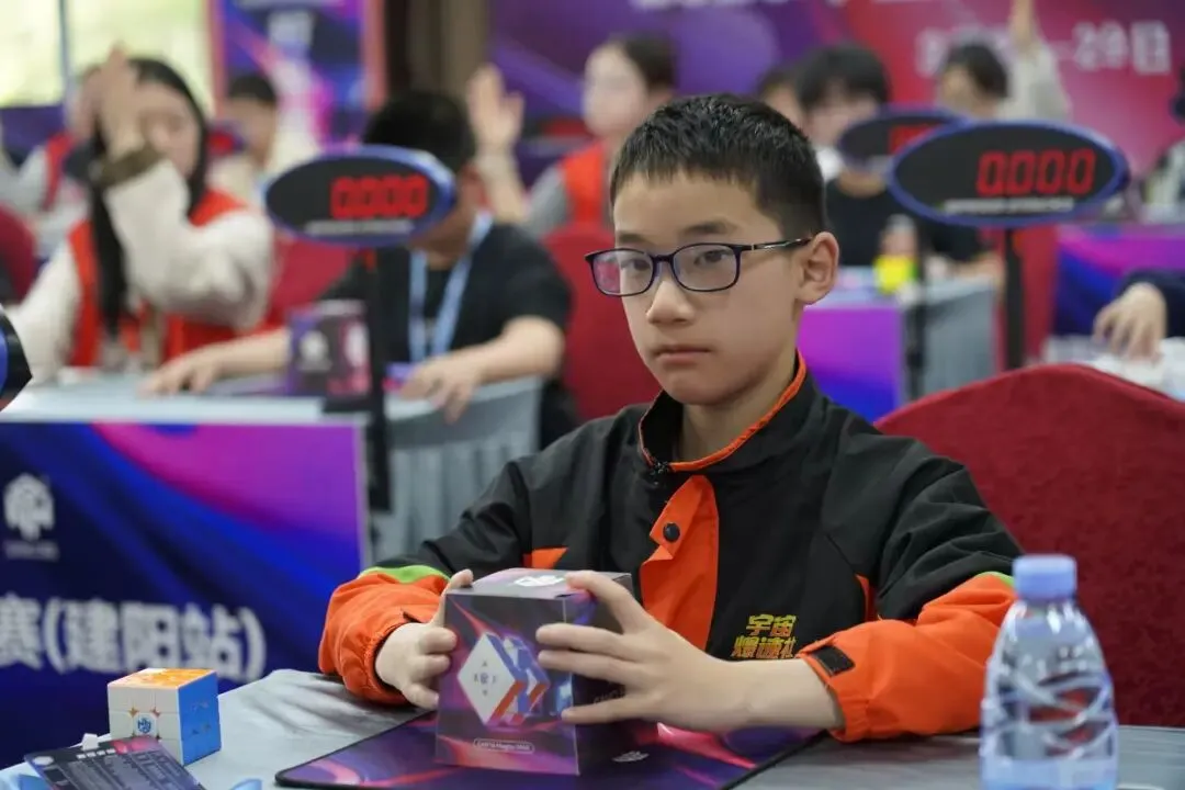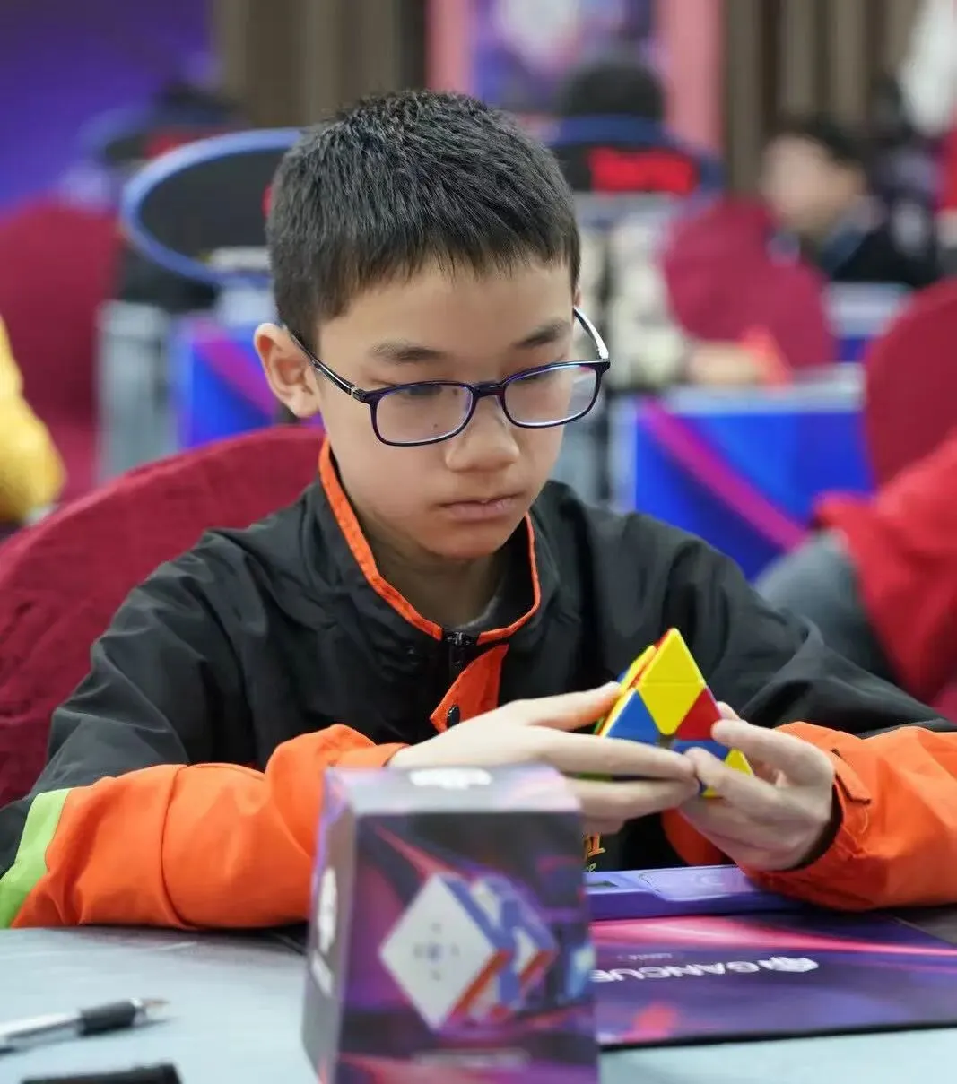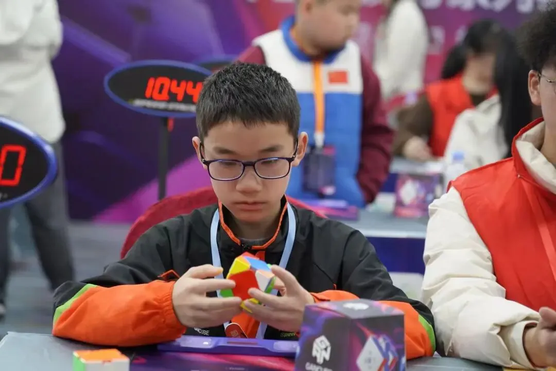 本次比赛中,斜转项目的竞争较为激烈。作为江苏省魔方队的一员,这位十岁的小将展现了稳定的发挥。