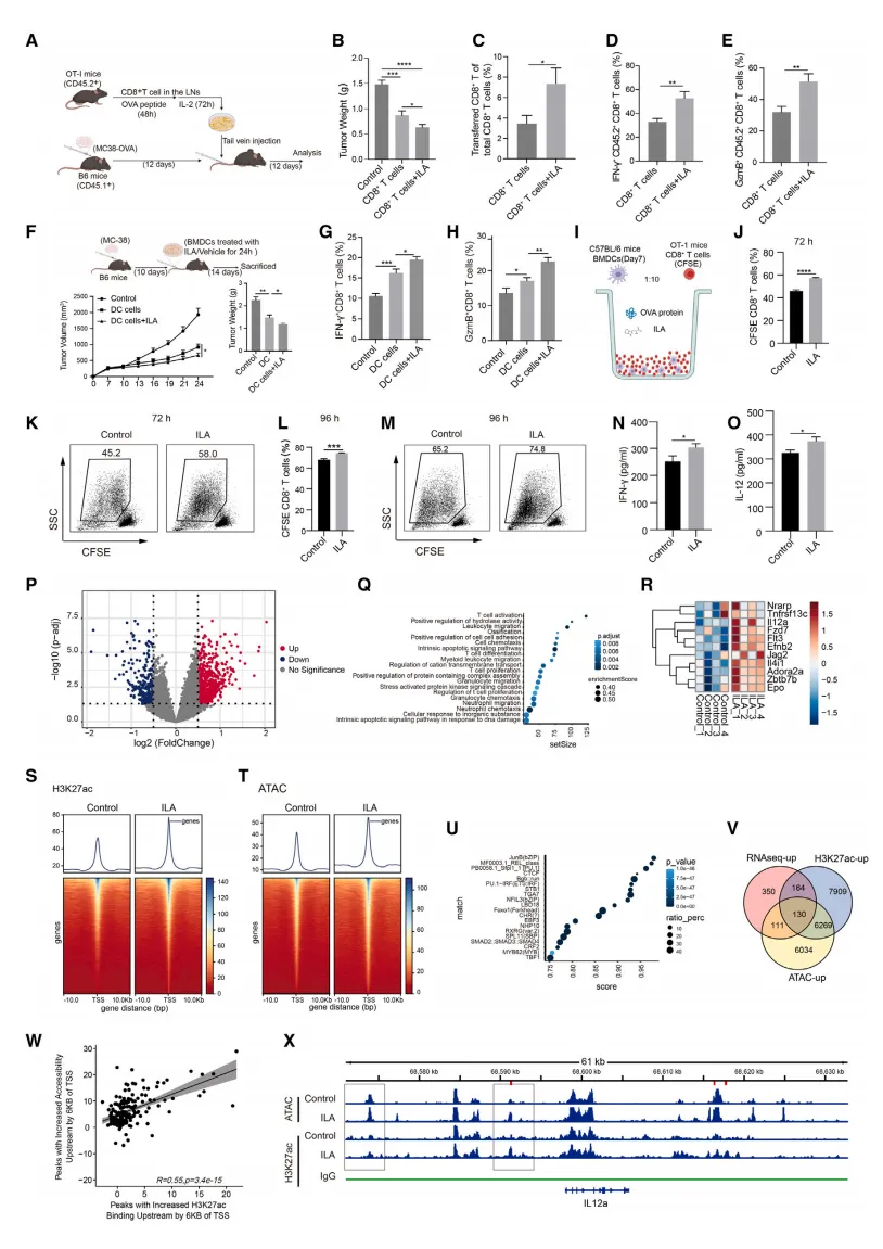 RNA测序显示,ILA处理的DC细胞中IL12a是上调最显著的基因之一【图5P-5R】。