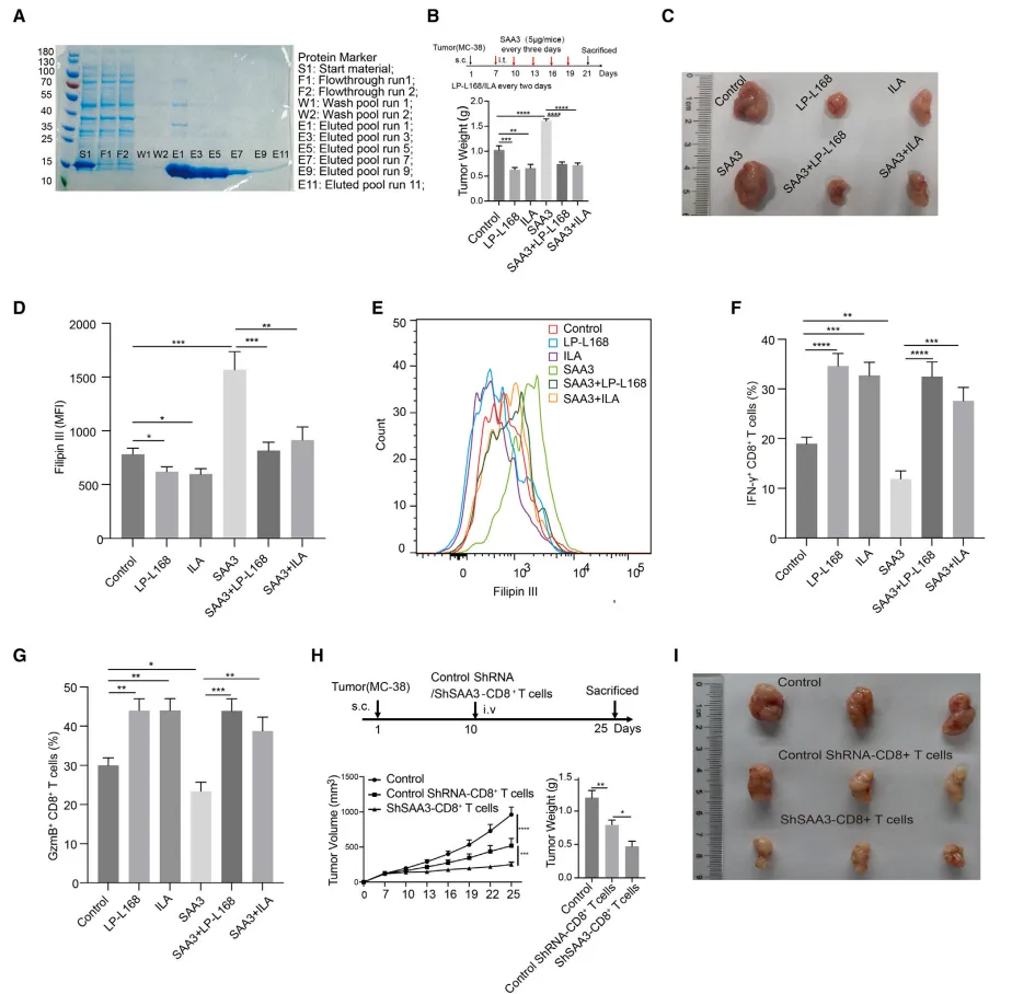 这清晰地表明,ILA通过抑制Saa3表达来降低CD8⁺ T细胞胆固醇水平,从而保护其抗肿瘤效应功能,最终抑制结直肠肿瘤的生长。