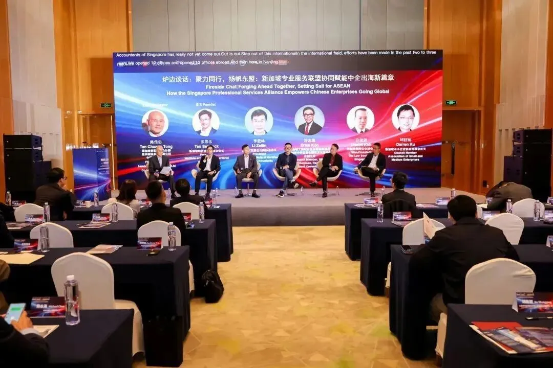 新加坡前国会议员、新加坡特许会计师协会(ISCA)会长张思乐(左二)在圆桌讨论时希望,新加坡和江苏两地的会计师协会可以推出更合时宜的培训课程,让两地会计师了解对方市场的会计准则、财税政策。(新加坡专业服务联盟启动仪式暨中资企业全球化发展对接会提供)