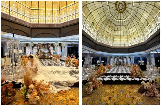 见证爱情婚宴秀。2025年秋季,中央饭店设计推出了“雅袍映喜·婚韵绵长”的秋季婚礼沙龙项目(不含春季)。共有10 场(每场最多能置15-16桌),共约1600人次见证了爱情。这一特色活动,一是突出东方美学主题,以“旗袍”为核心元素,将传统东方美学与现代婚礼理念融合,展现旗袍作为婚礼服饰的独特魅力,为新人提供区别于西式婚纱的浪漫选择。二是强调场景化体验。婚礼现场布置融入秋日元素,营造出“秋日婚礼美学”的氛围,让参与者沉浸式感受东方婚礼的诗意与浪漫,三是定制化服务。准新娘可现场预约量身定制专属婚礼旗袍,满足个性化需求,使旗袍成为承载爱情故事的专属符号。四是文化传承与创新。通过旗袍的盘扣、面料、工艺等细节,展现传统手工艺的匠心,又结合现代设计元素,使旗袍既保留文化底蕴,又符合当代审美,是旧时光的浪漫与现代时尚的结合。