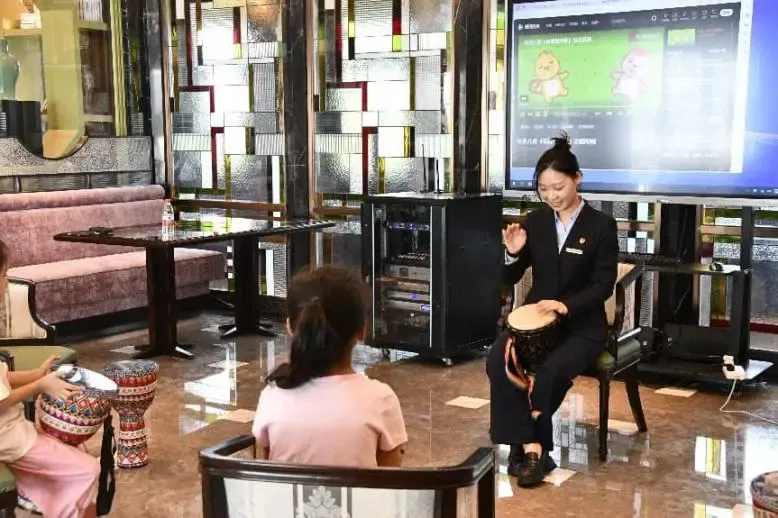2025年七、八月,以及11月份,酒店出租率居高不下,其中一个重要原因,就是暑假和今年试行秋假带来的亲子家庭入住客人增多。针对这一市场,酒店及时并免费推出了各项亲子研学活动,大受家长和孩子们的欢迎。酒店为亲子家庭精心设计了四大主题课堂,包括:跃动非洲鼓,用节奏唤醒身体潜能;笔墨绘金陵,以笔墨对话城市灵魂;手作大肉包,于烟火中传承匠心情怀;巧编祝福绳,借丝线编织情感纽带等。