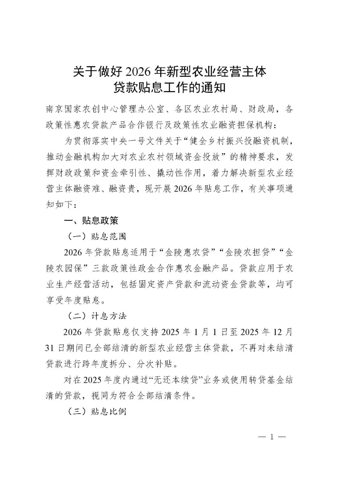 附件:《关于做好2026年新型农业经营主体贷款贴息工作的通知》(征求意见稿)