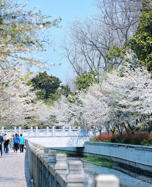 珍珠河这个地方很多外地人不知道,但南京本地人每年都会来,因为它解决了一个问题:怎么把樱花的美放大一倍。答案是加水,河岸两边种满樱花树,花开的时候树和倒影完全对称,你低头看水面就是另一片花海,风一吹花瓣落在水面上顺着水流走,这种流动感是陆地上拍不出来的,很多人说珍珠河的樱花有灵气,其实是水给的,水让静止的花有了方向感。