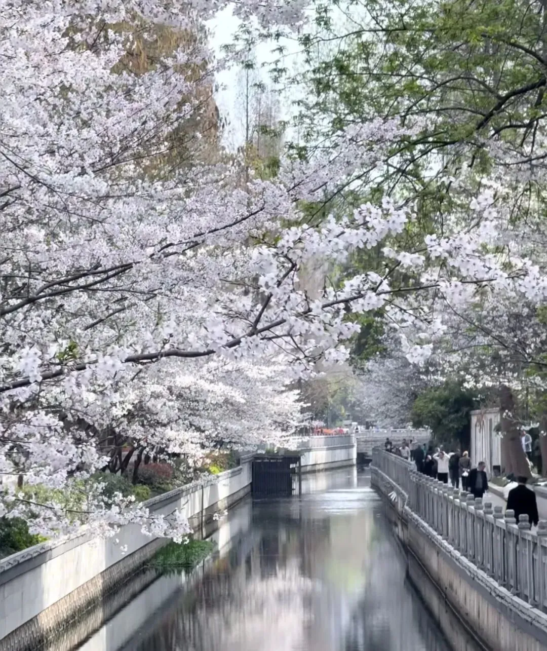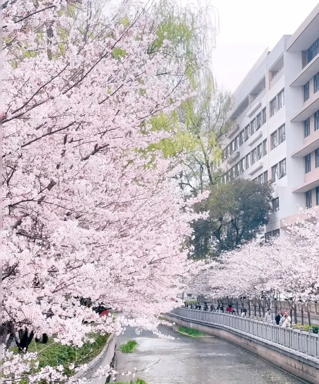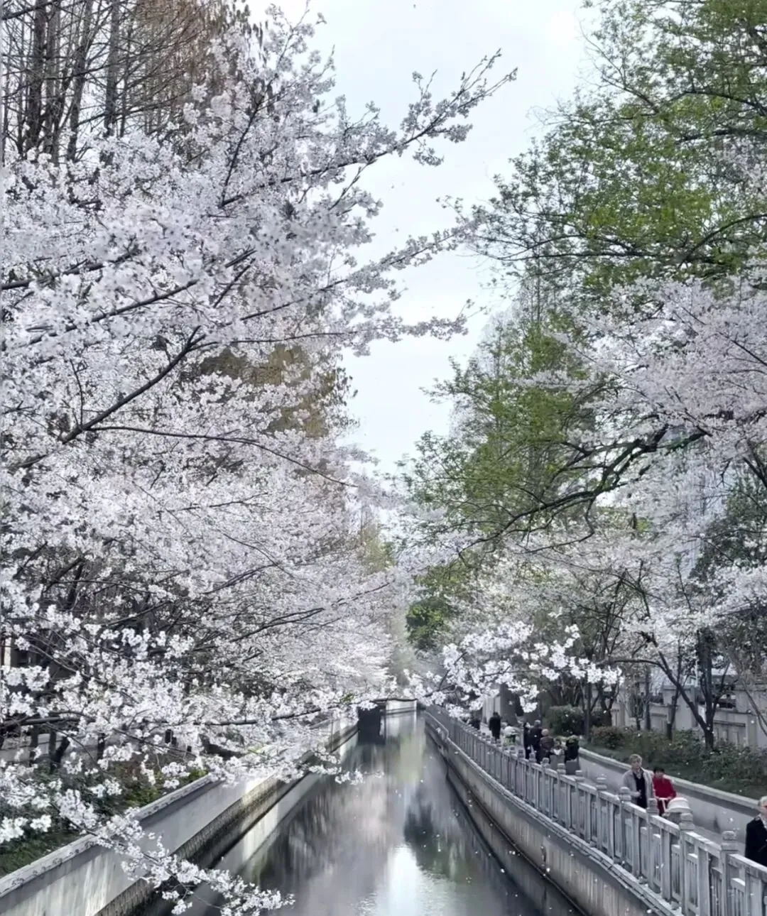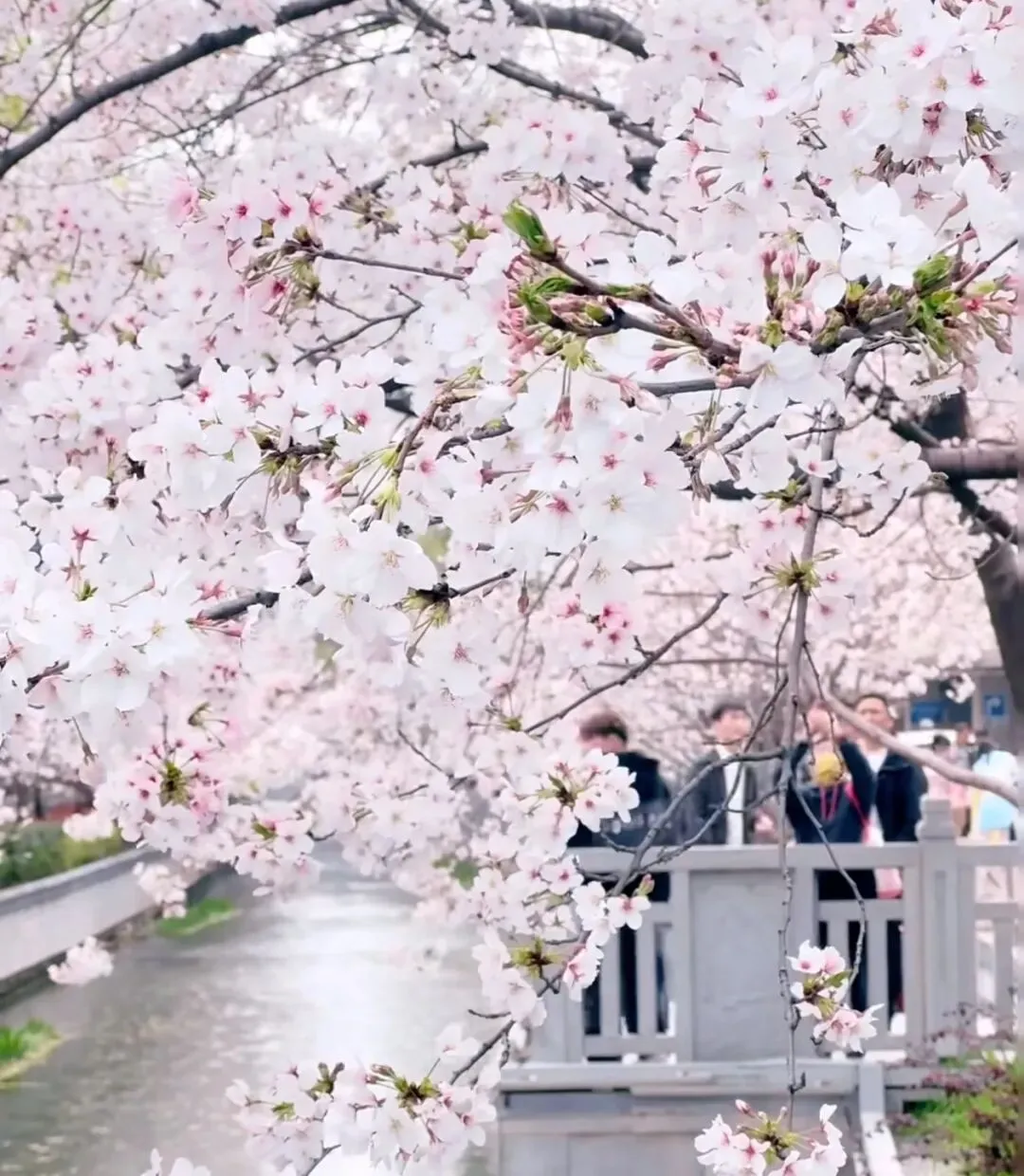 沿河两岸,樱花如云似雪,
