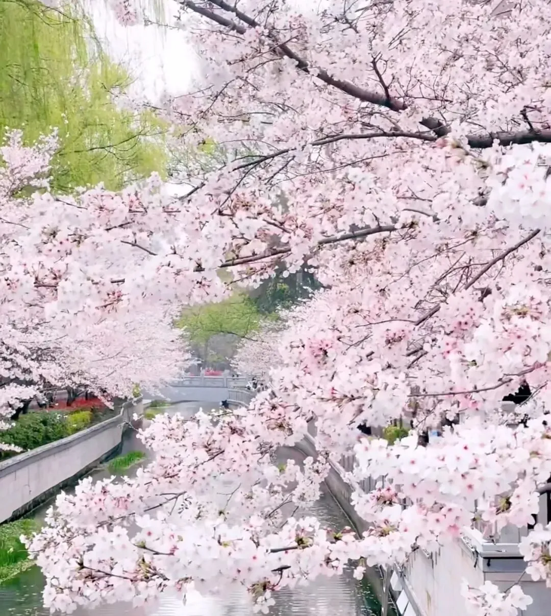 美哭了!南京珍珠河樱花怒放,整条河都粉了!不去人挤人,这里才是春日天花板!