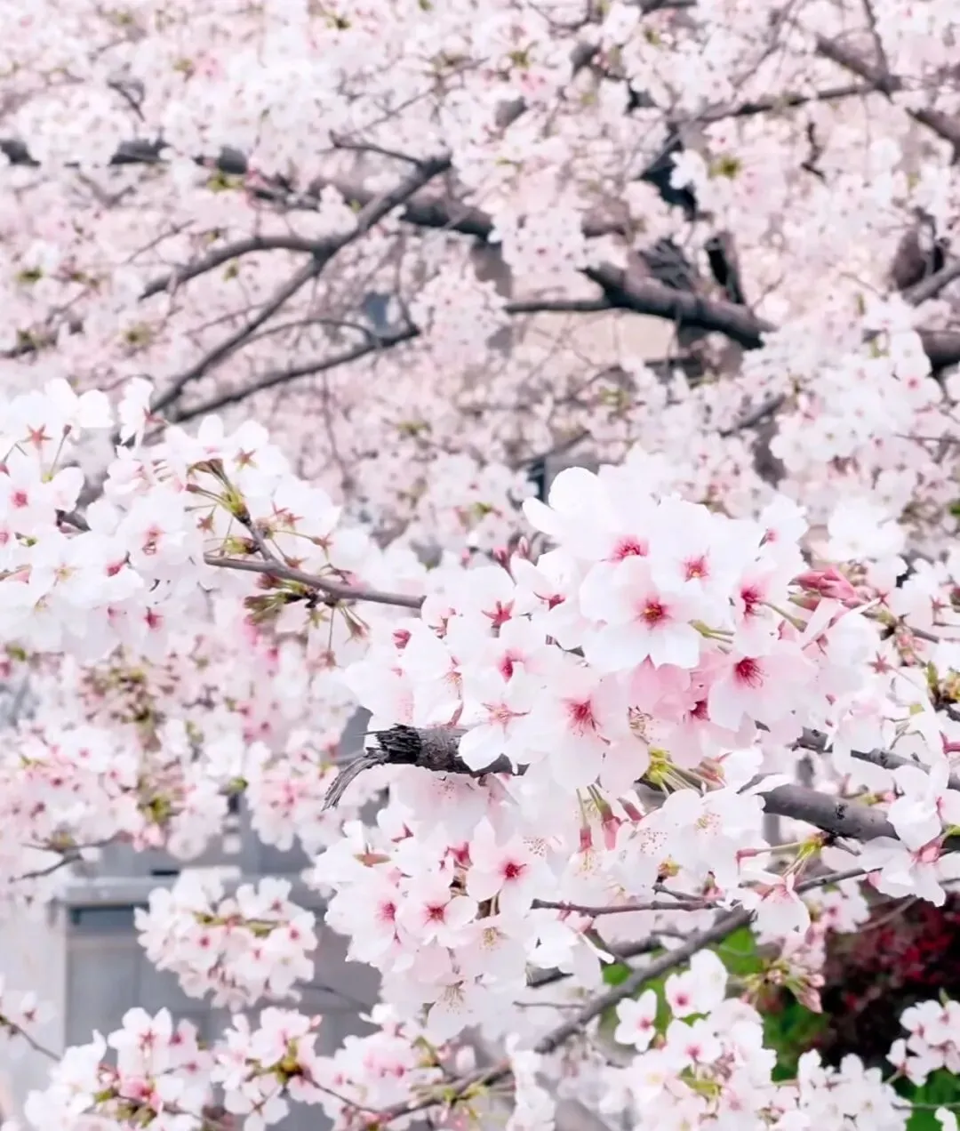 樱花与老墙、民国建筑、小桥流水相映,