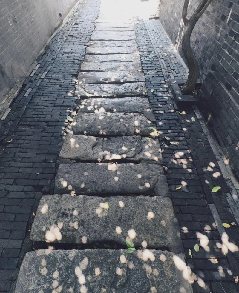 我坐在那台阶上歇脚的时候碰到一个老头,七十多岁,就住巷子里,他跟我说了一句话让我记到现在,他说“你们年轻人来这儿找什么呢,不就是找点真的东西吗”,我当时愣了一下,后来想想真是这么回事。你看主街上那些店,装修得再好也是复制品,可积善里这台阶是真的,墙上的砖是真的,门楣上刻的字也是真的,这种东西不需要你说它多好,它就搁那儿,你看见了就知道什么叫时间的力量。
