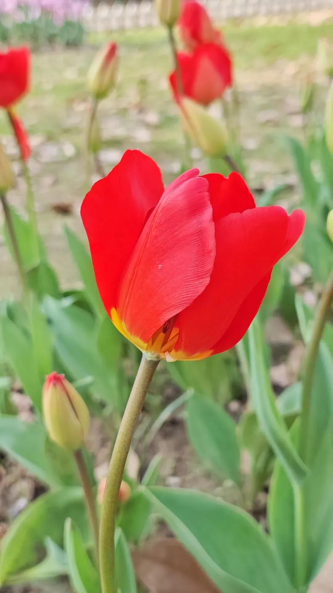 红色郁金香是郁金香经典色系,属百合科郁金香属球根花卉,是春季极具代表性的观赏花卉。