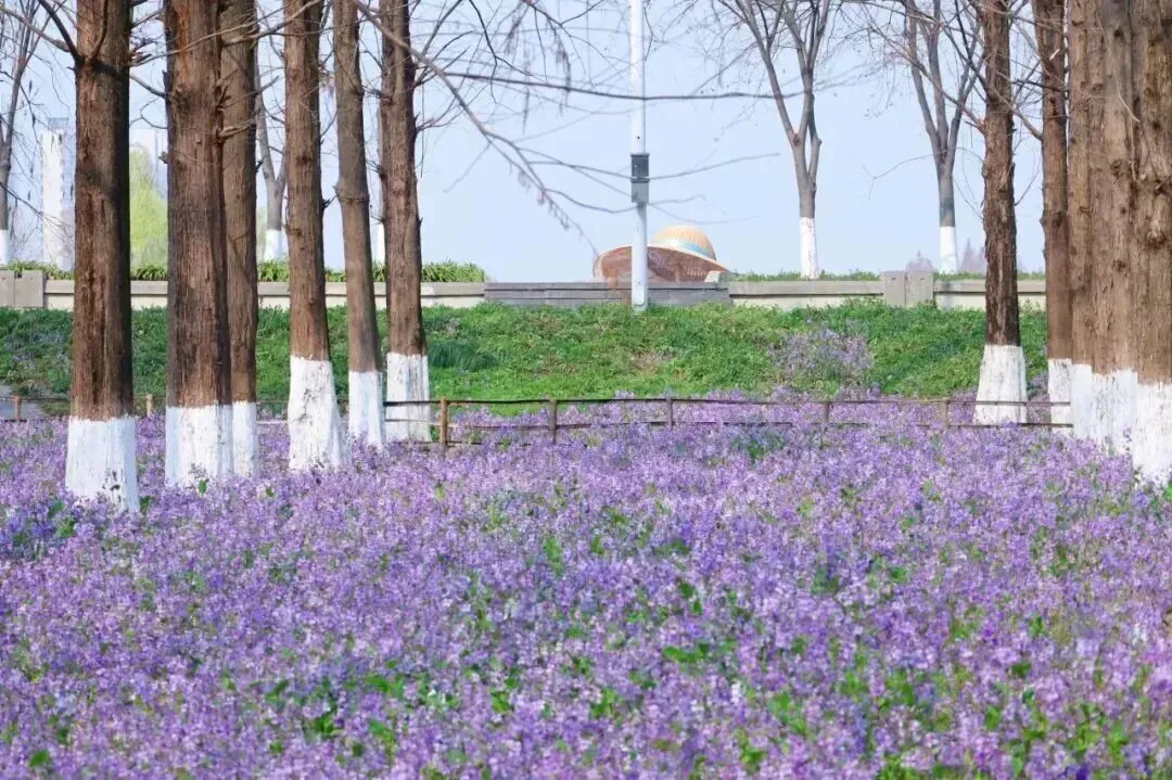 绿博园左岸花海东侧,一片铺天盖地的紫色花海正悄然盛放,成为这个春天最静谧的浪漫。
