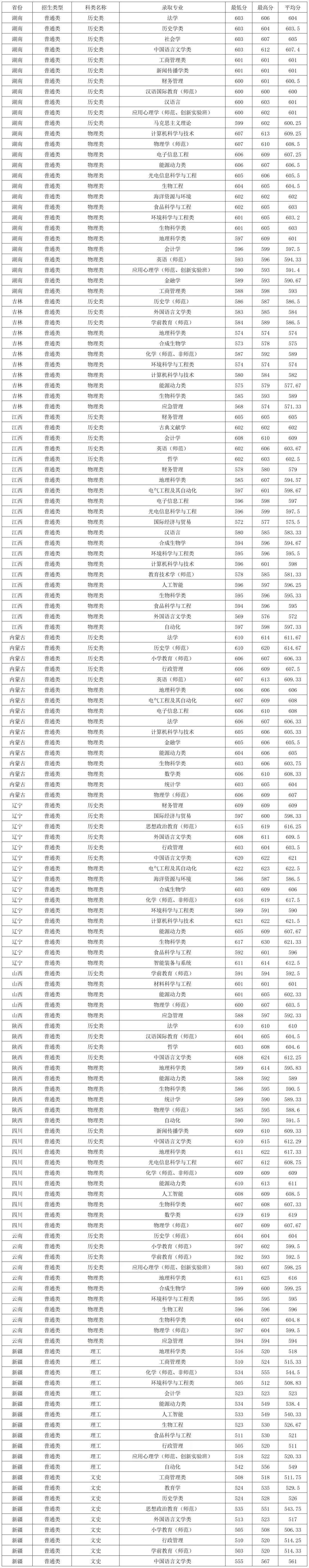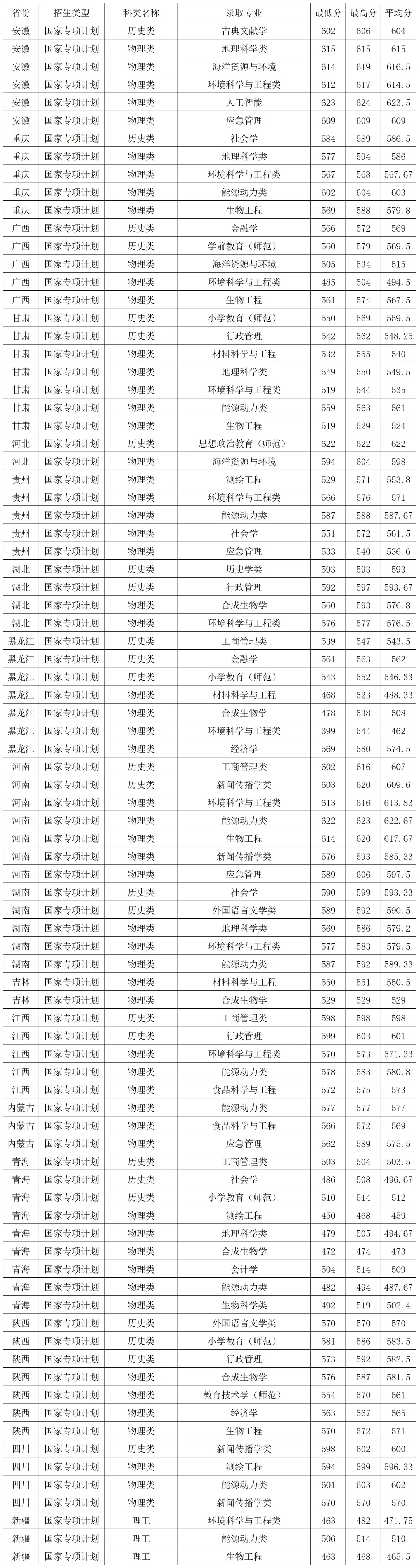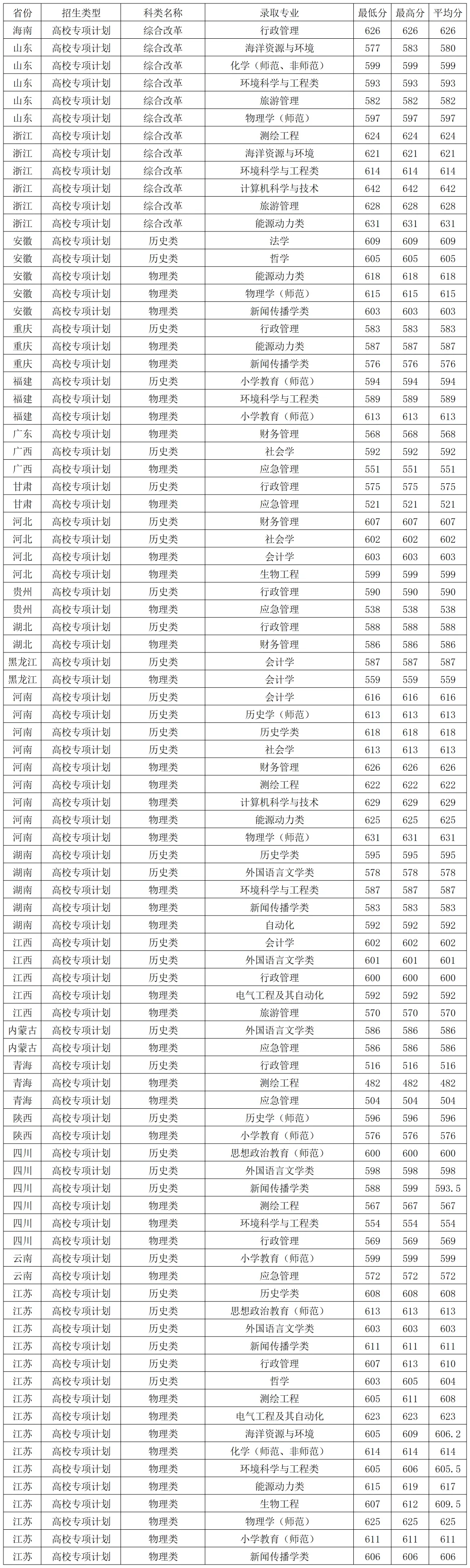 南京师范大学2025年国家专项在各省各专业录取分数线