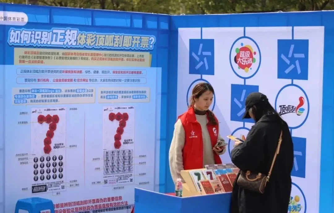 天街商圈广场上,体彩工作人员与志愿者们通过主题宣讲、趣味问答、游戏互动、案例分享等形式,向过往群众普及责任彩票理念,讲解理性购彩、反诈防骗等知识。现场摆放的宣传海报、风险提示牌与公益展板,展示了体彩公益金助力全民健身、民生保障的成果,让群众在感受运动活力的同时,深入了解体彩的社会责任与公益价值。