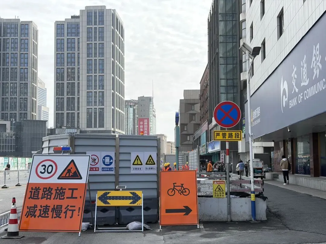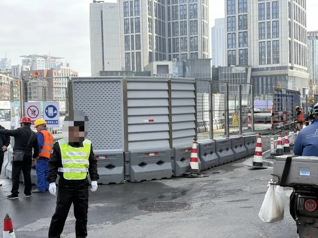 几乎每处围挡旁都配有一名交通协管员,正在疏导车流与人流,尽可能减少施工对早晚高峰通行的影响。