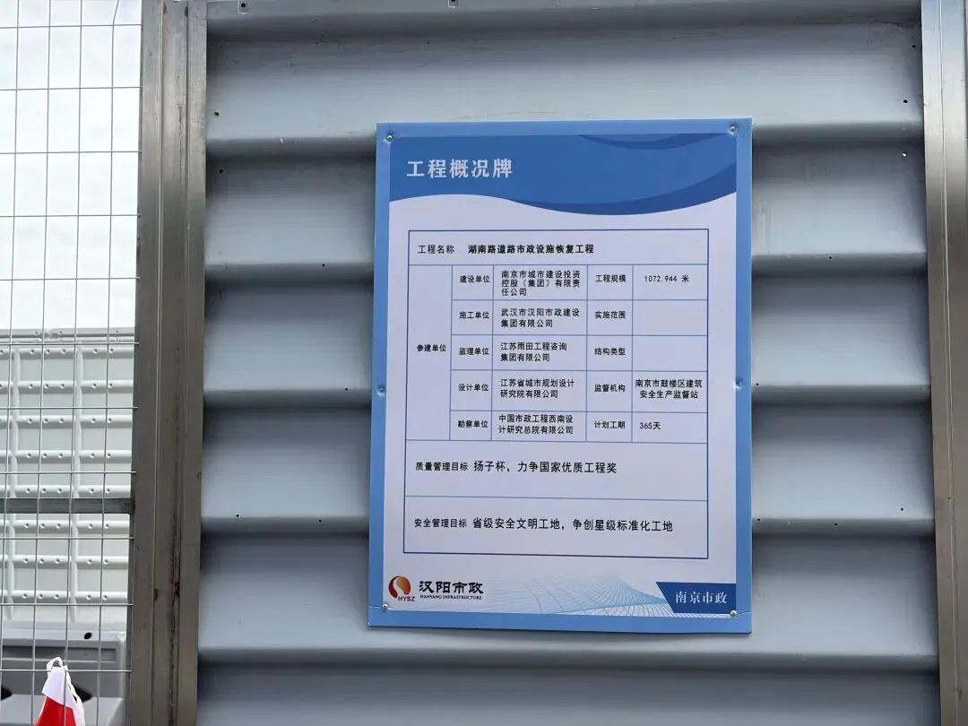 “建设工程扬尘污染防治公示牌”显示,此次改造工程的施工单位为武汉市汉阳市政建设集团有限公司,工程总长度约1072.944米,计划工期为365天。