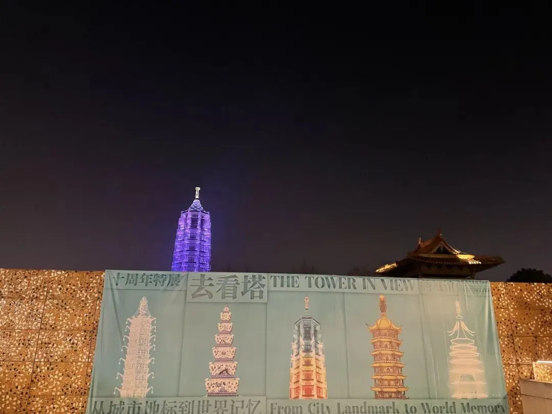 户外区域倒是让人舒服不少,在号称“永久性脚手架”的琉璃塔前拍拍照,看看广场上柔和的灯光,吹一吹夜晚的风。