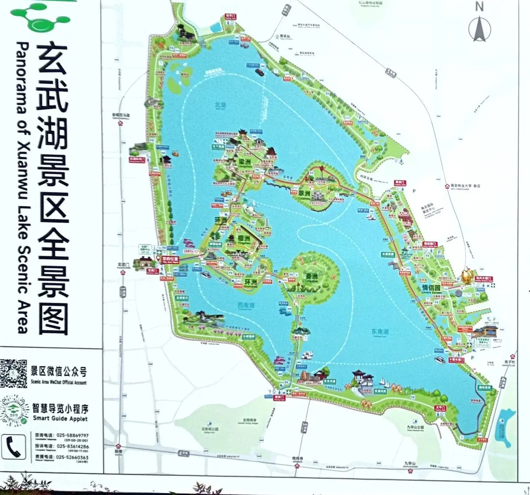 Five islands are like five emeralds inlaid in the lake, each with its own characteristics. Huanzhou Island is like a green jade belt, encircling the lake water. The willows on the island sway gently in the wind, as if fairies were dancing gracefully. Yingzhou Island is a popular spot for cherry blossom viewing. Every spring, when the cherry blossoms are in full bloom, they look like clouds and rosy clouds, attracting a large number of tourists to come and admire and take photos. Liangzhou Island is the earliest and most bustling of the five islands. There are many ancient buildings and garden landscapes on the continent, such as Liansheng Tower and Friendship Hall, which are filled with a strong historical and cultural atmosphere. And Cuizhou Island is renowned for its lush green vegetation and serene environment. Apart from the five islands, the mountains around Xuanwu Lake also add a unique charm to the lake. Zijin Mountain stands majestically on the east side of the lake, with undulating mountains and lush trees, complementing Xuanwu Lake and forming a beautiful landscape painting. Standing by the lake and gazing at Zijin Mountain in the distance, the mountains and water complement each other perfectly, making one feel the magic and beauty of nature.
