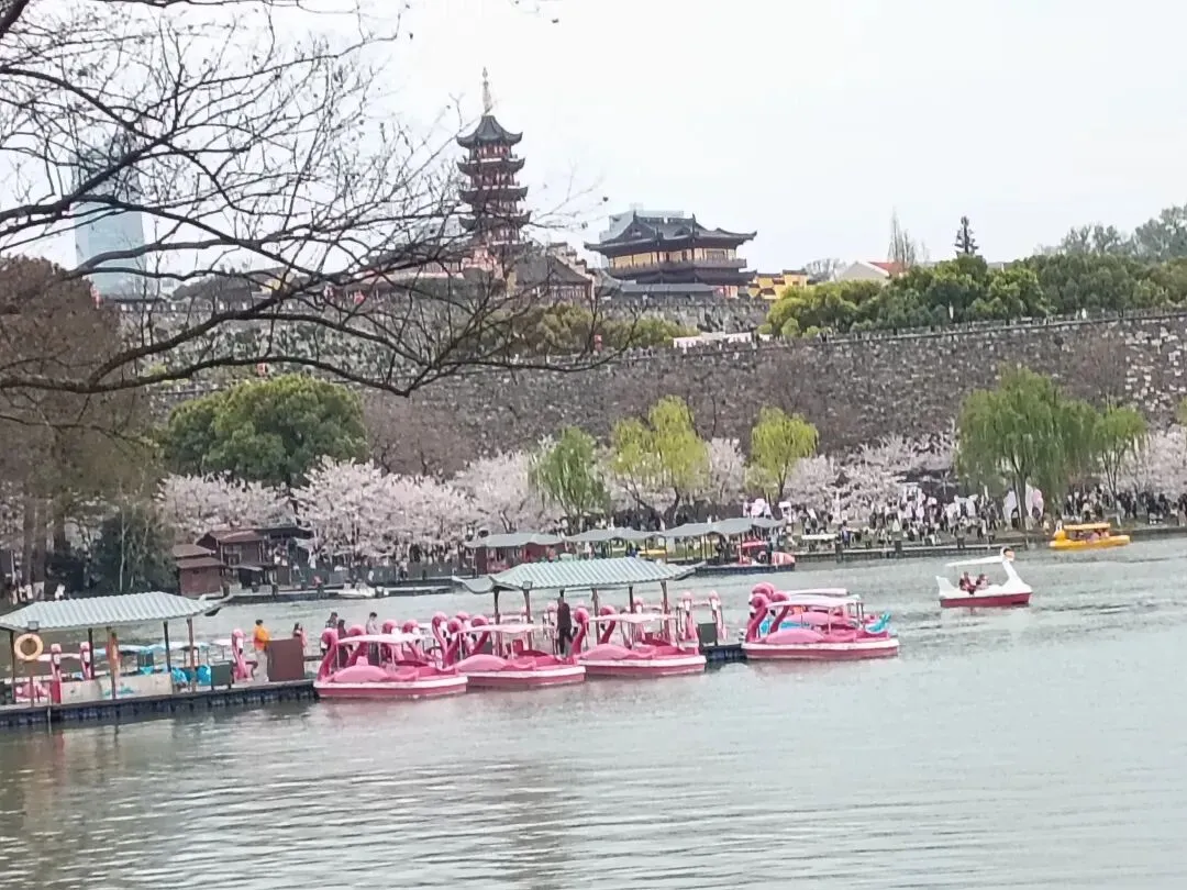 In spring, flowers bloom, cherry blossoms, which are the most beautiful spring ones, attracting numerous people to Xuanwu Lake, which is a National AAAA Tourist Attraction, National Water Conservancy Scenic Area, and National Key Park. Archaeological evidence confirms that Xuanwu Lake is a remnant of the ancient Yangtze River channel. Since the pre-Qin period, Xuanwu Lake has been known by nearly 20 names, including "Sangpo", Houhu Lake, North Lake, Taiye Pool and Kunming Pool. The name Xuanwu Lake originated in the 23rd year during Emperor Yuanjia's period of Song Dynasty in the year of 446.Xuanwu Lake is located in the main urban district of Nanjing, close to Zijin Mountain in the east, adjacent to Ming Dynasty City Wall in the west, near Jilong Mountain in the south, contiguous to Nanjing Railway Station in the North. It was the royal garden lake during the Six Dynasties, and was the National Archive(国家档案馆) of Ming Dynasty where registered books were stored, reputed as Jinling Pearl. Xuanwu Lake covers a total area of over 5 square kilometers, with a lake area of 3.78 square kilometers and a land area of 1.35 square kilometers, composed of five islets, one park and one road. The five islets include Huanzhou, Yingzhou, Liangzhou, Lingzhou and Cuizhou, presenting beautiful scenery everywhere in each season, including Huanzhou Willows, Yingzhou Flower Sea, Liangzhou Autumn Chrysanthemums and Lingzhou g trees. It integrates mountains, waters, cities and forests, with many places of interest, featured by eight views, such as Parade Review at Royal Lake, Water Gate Inquiring About Routes, Taicheng Willows, Fragrant Lotus at Curved Plank Road, Rosy Clouds at Long Causeway, Admiring the Moon in Dragon Pool, Guo Pu's Mound, and Tianxia Huangce, etc.